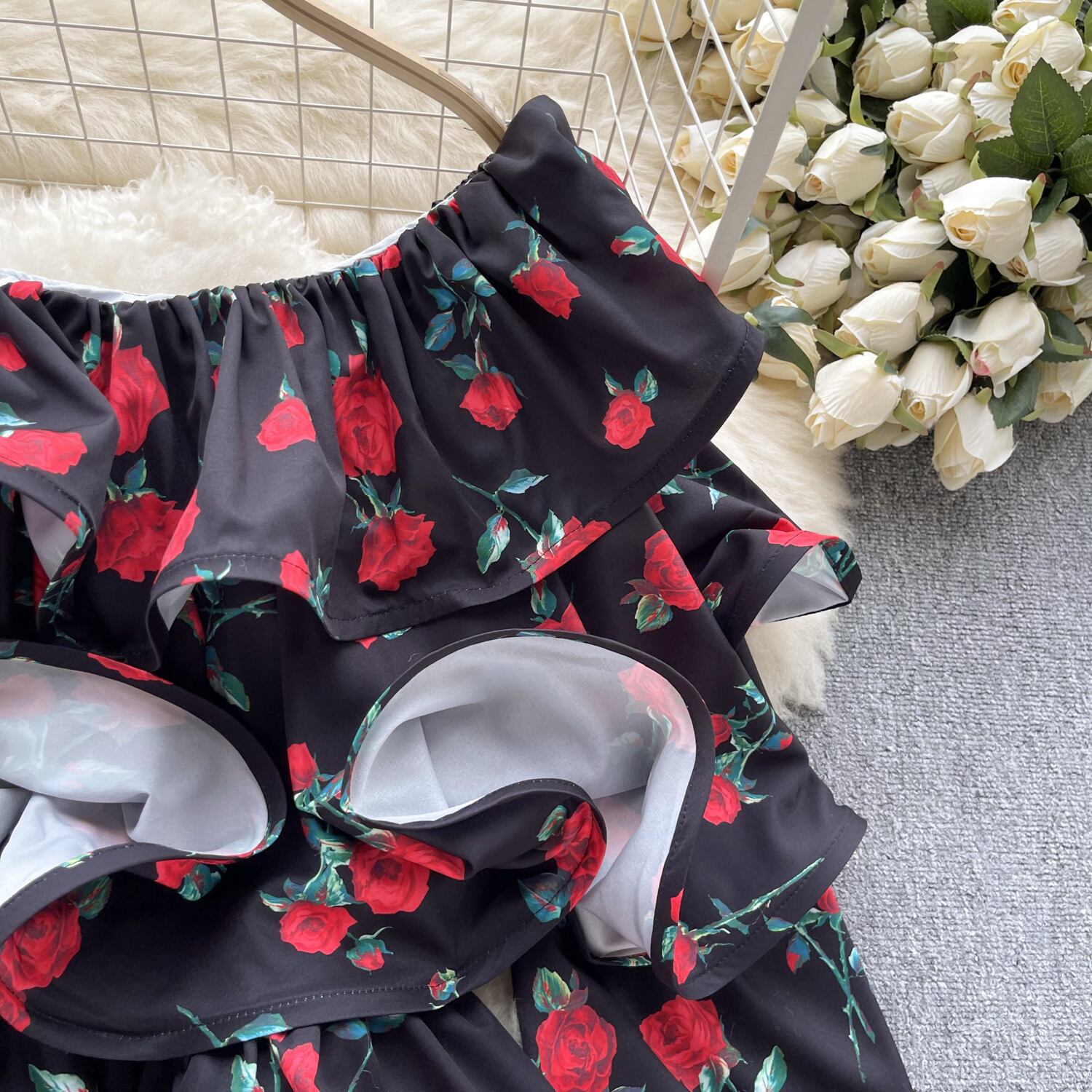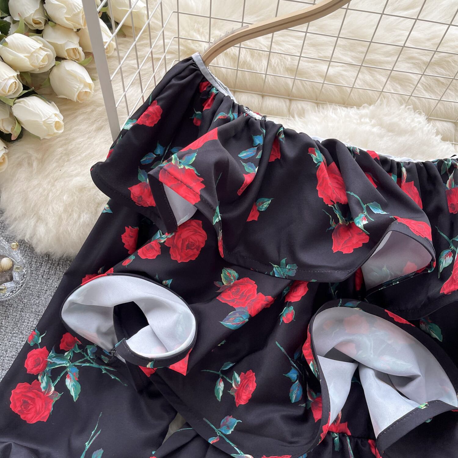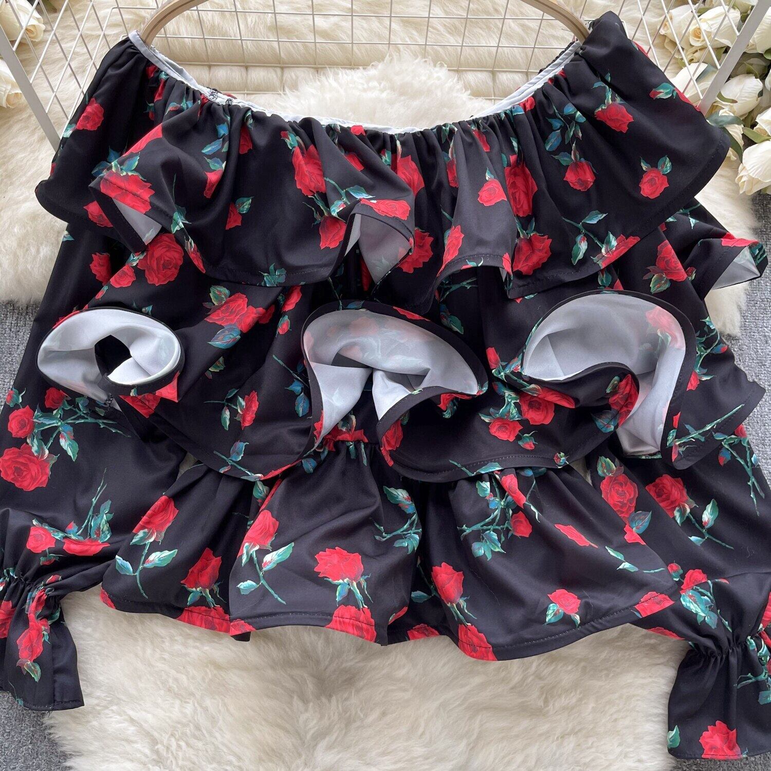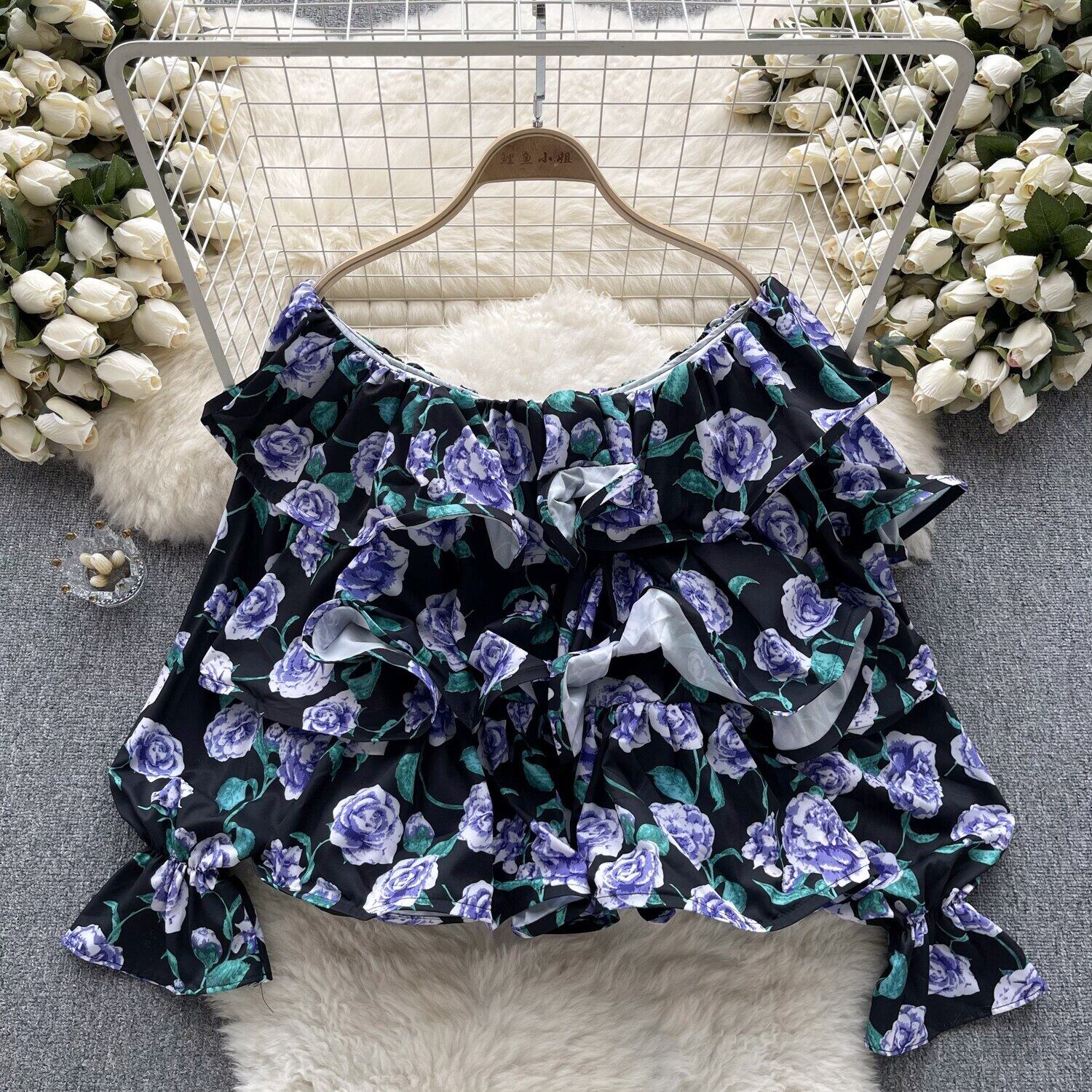 Nomikuma シックプリントフリルレディースブラウススリムウエストオフショルダーシックトップスデ