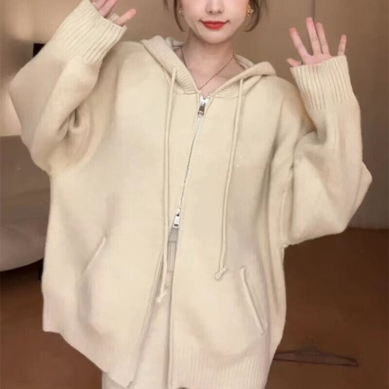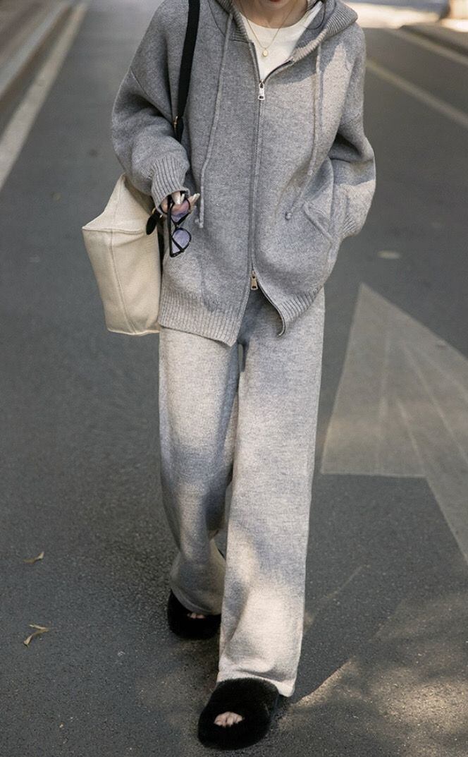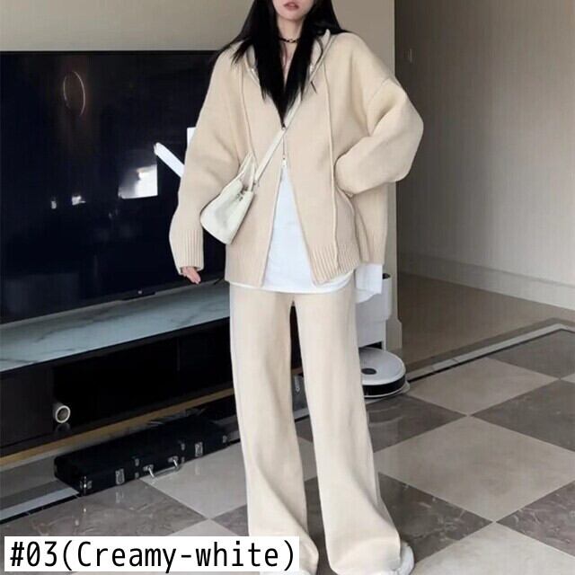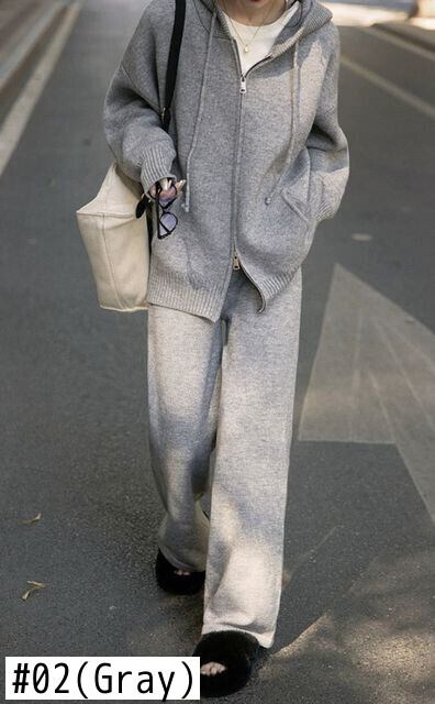 Nomikuma カジュアルニット 2 枚秋冬セットソリッドフード付きセーターコート + ウエストワイドレッグロングパンツ オータム 秋物 ウィンター 冬物 ワイドパンツ ソリッドカラー
