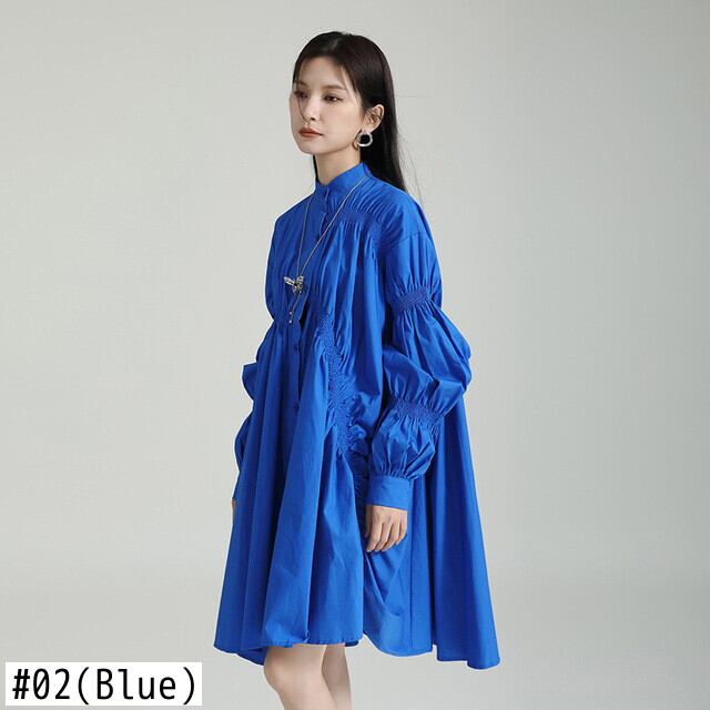 Nomikuma ドレス因果不規則ひだシングルブレストブラウスドレスランタンスリーブ不規則 Vestidos