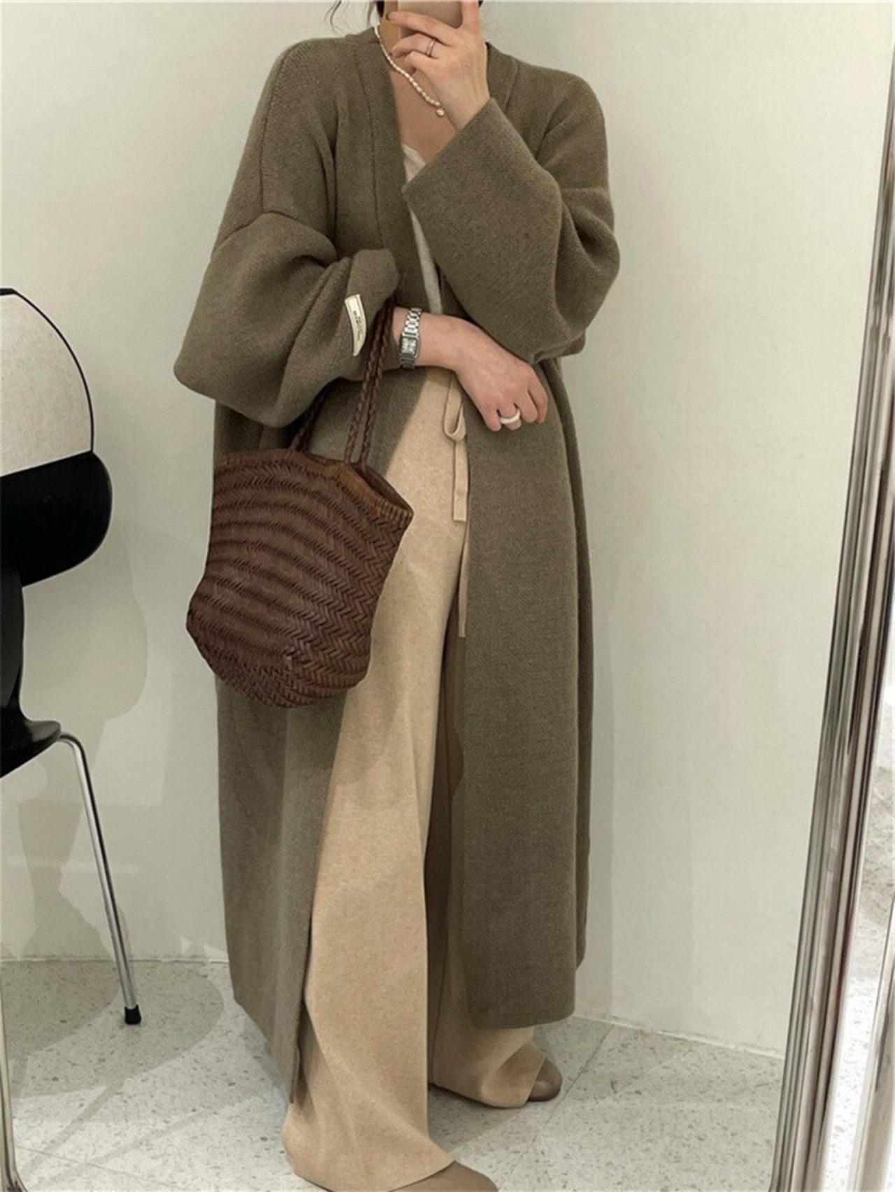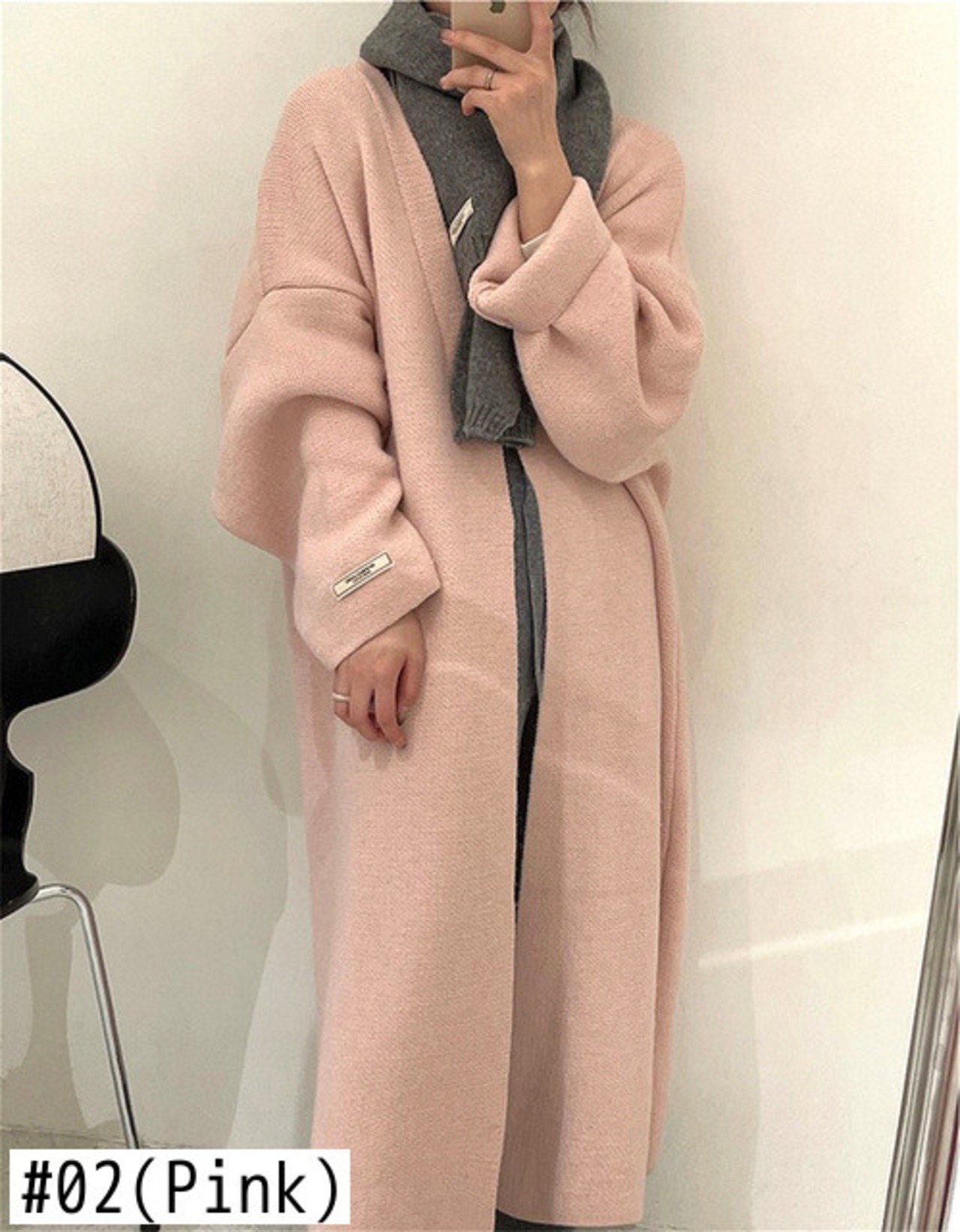Nomikuma ロングセーターコート秋冬手紙アップリケニットカーディガンニットオープンステッチ オータム 秋物 ウィンター 冬物