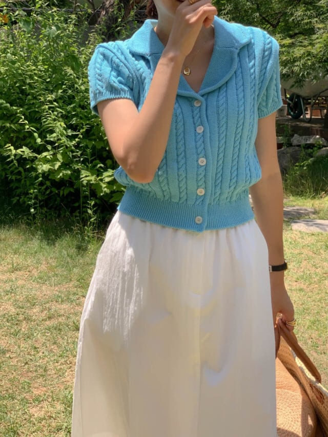 Nomikuma ターンダウンカラー ニット カーディガン パフ スリーブ ニットウェア シングルブレスト セーター コート