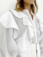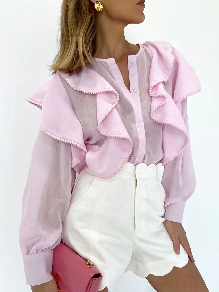 Nomikuma 夏ピンク長袖ブラウスフリルパッチワーク O ネックトップ底シャツデ ロング サマー 夏物