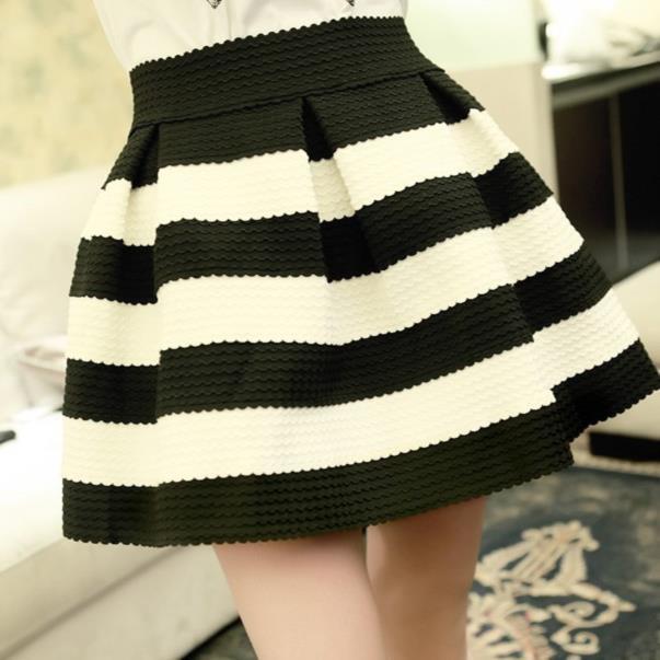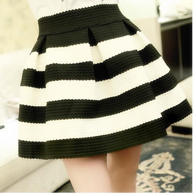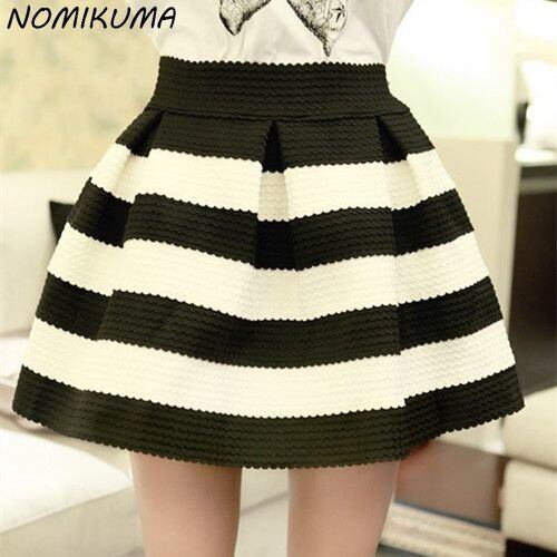 Nomikuma 春夏黒白ストライプミニスカートウエスト甘いヒットカラー A ラインスカート段段デ ホワイト ブラック 大人ガーリー スウィート キュート カジュアル スプリング 春物 サマー 夏物 Aライン