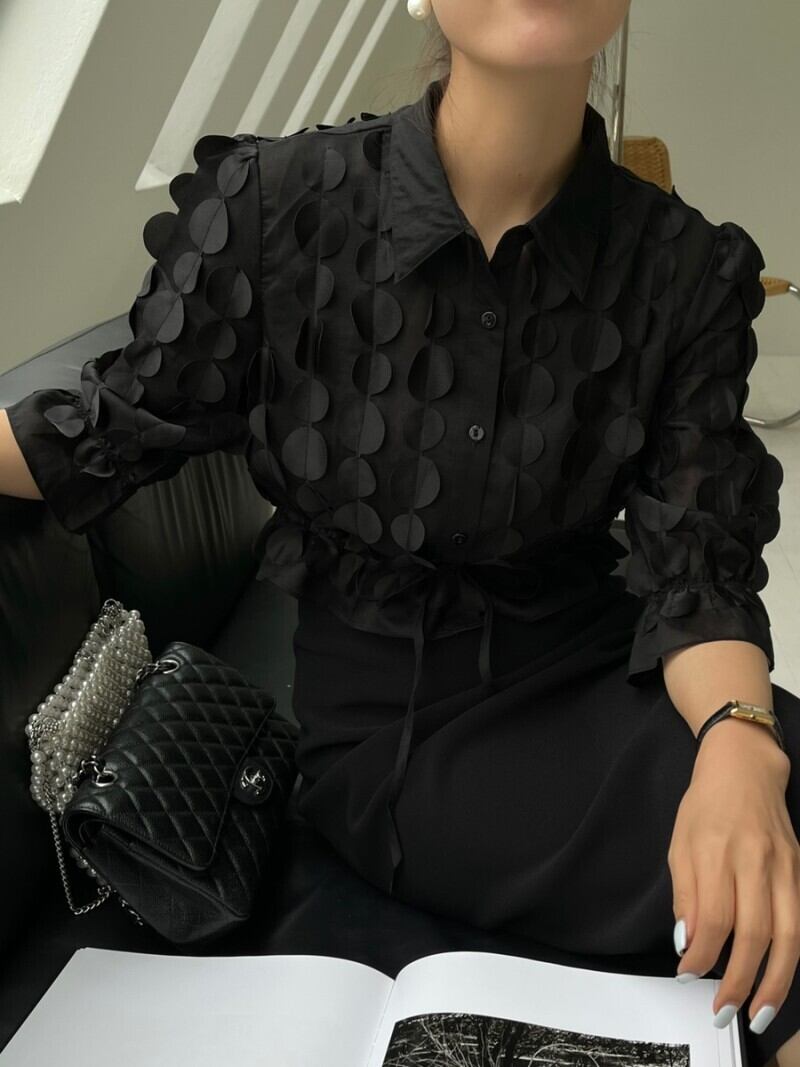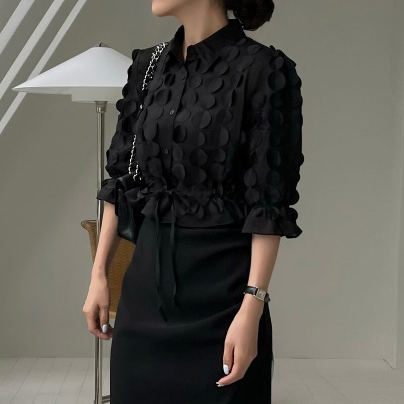 Nomikuma 3D 花びらブラウス夏レースアップスリムウエストシャツ夏半袖デ ハーフスリーブ サマー 夏物