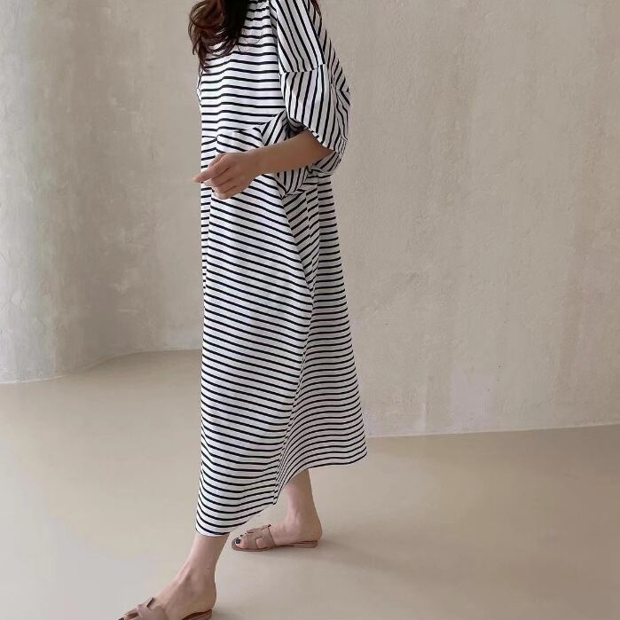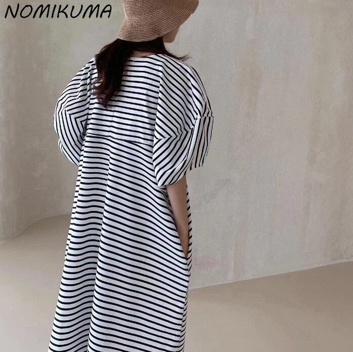 Nomikuma シック夏 O ネック因果パフスリーブシャツドレスロングローブ甘い Vestidos 大人ガーリー スウィート キュート カジュアル サマー 夏物 Oネック
