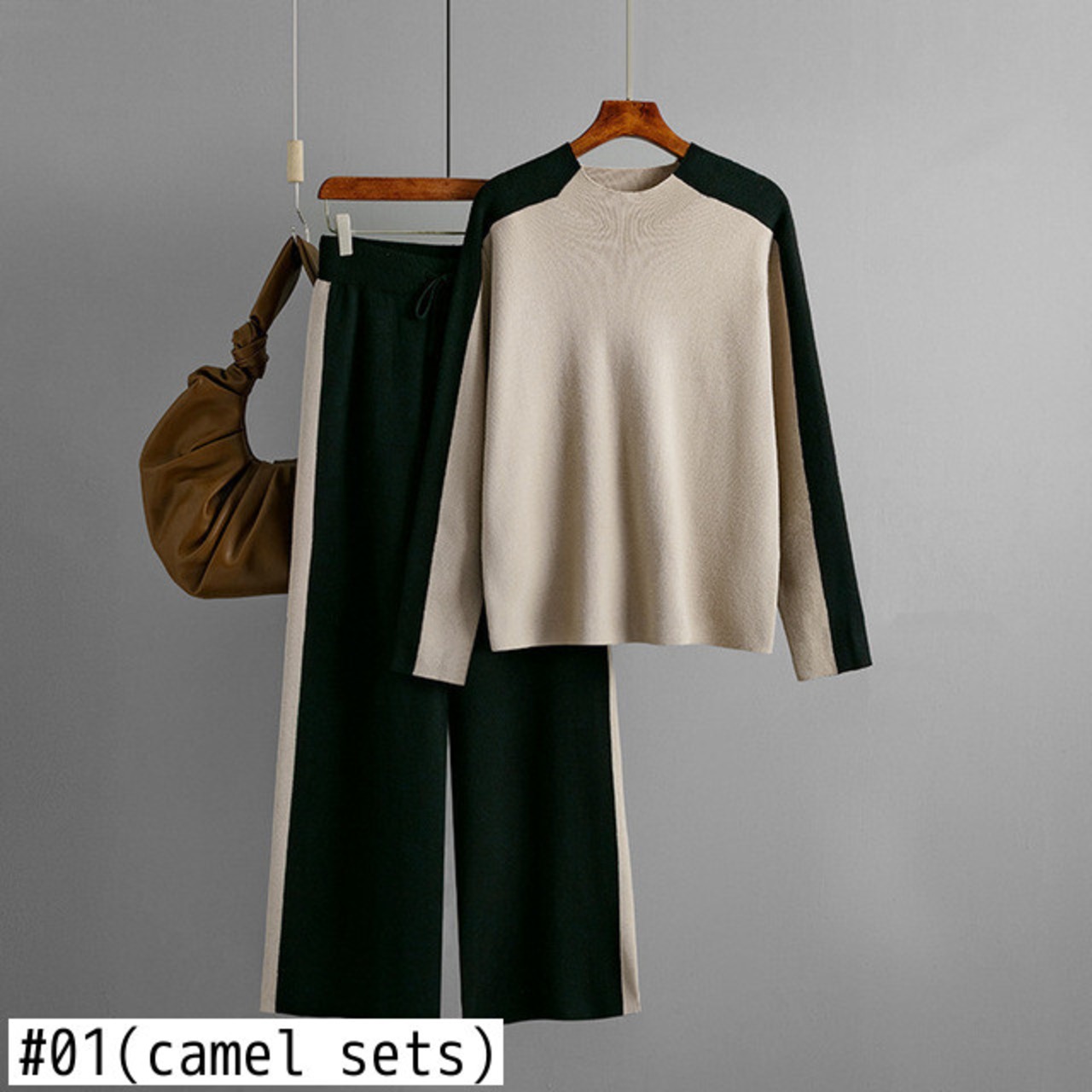 Nomikuma 半襟セーターセット秋冬ヒットカラーパッチワーク足首丈パンツツーピース衣装 オータム 秋物 ウィンター 冬物