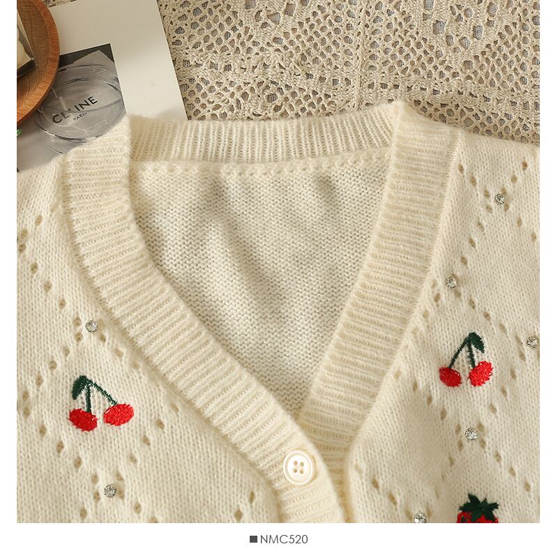 Nomikuma 夏中空アウト V ネック刺繍薄手ニットカーディガン甘い長袖ショートセーターニットコート ロング 大人ガーリー スウィート キュート カジュアル サマー 夏物 Vネック
