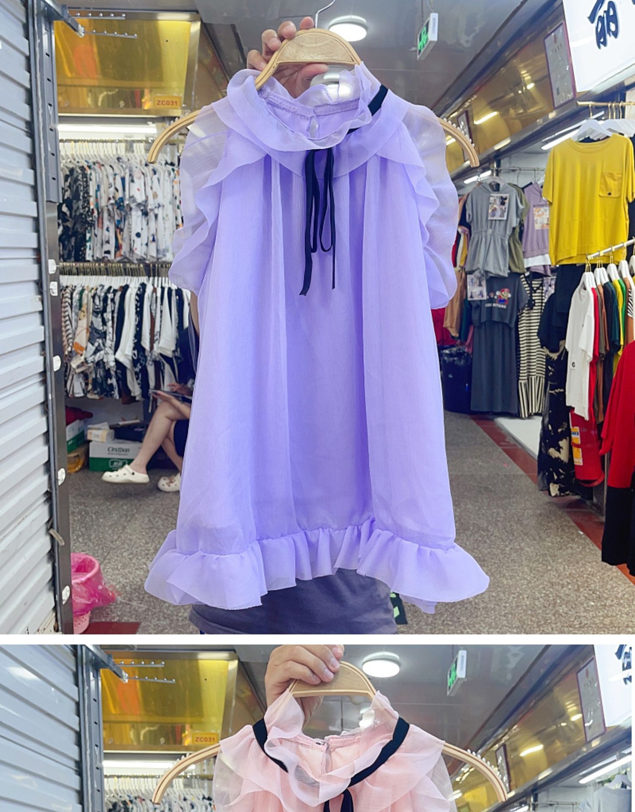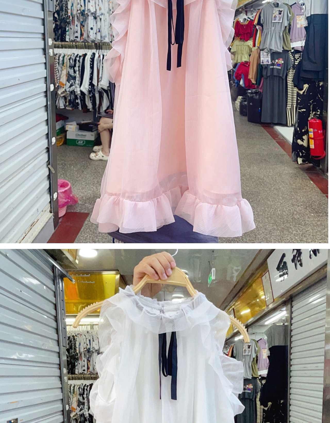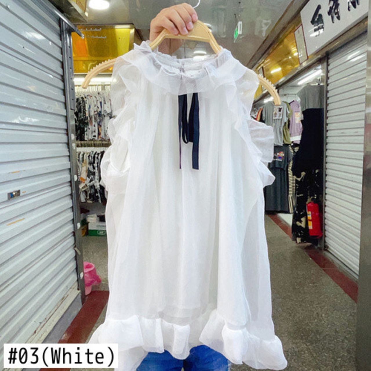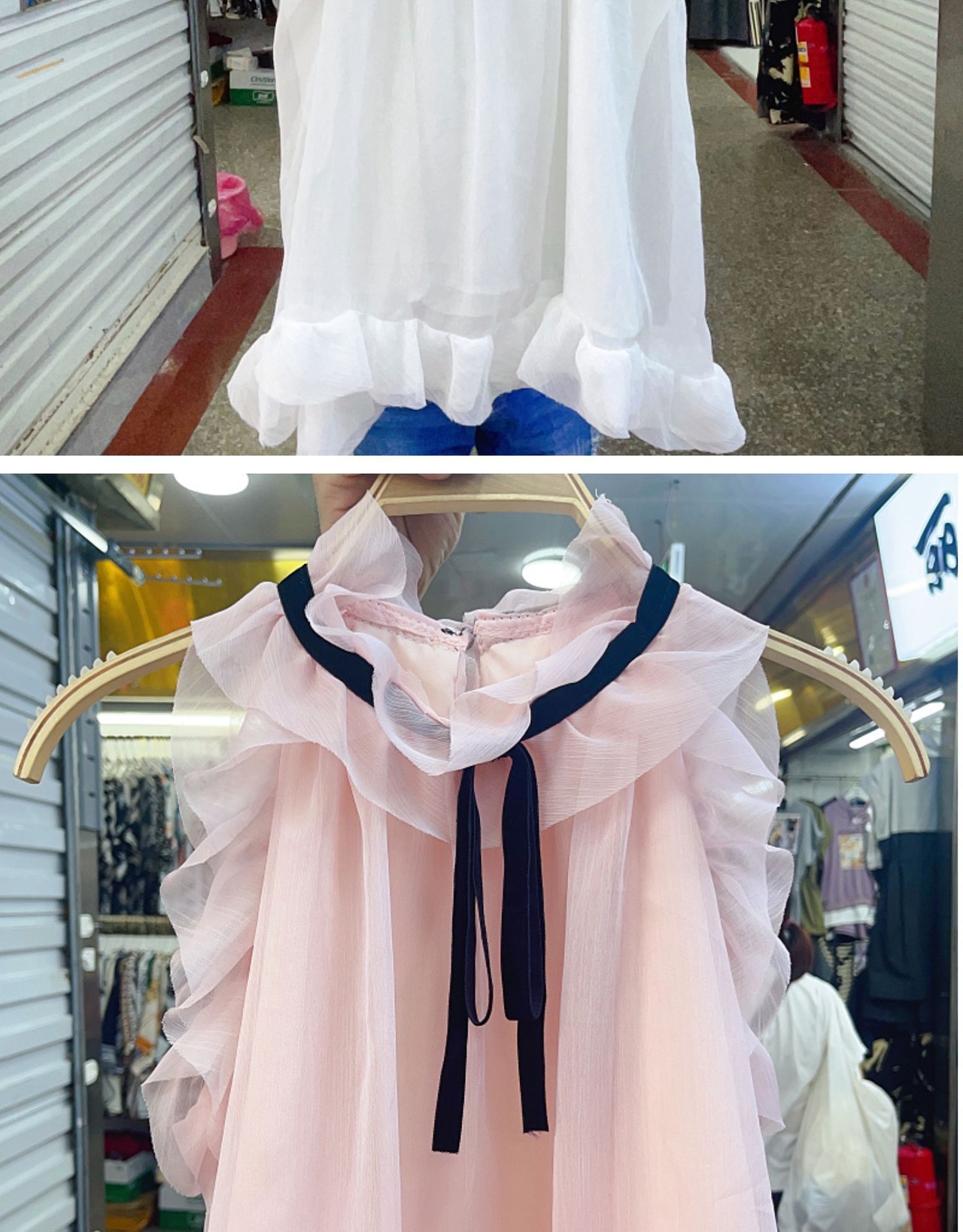 Nomikuma 夏レースアップフリルスタンドネックノースリーブカジュアルブラウスレディーストップス サマー 夏物