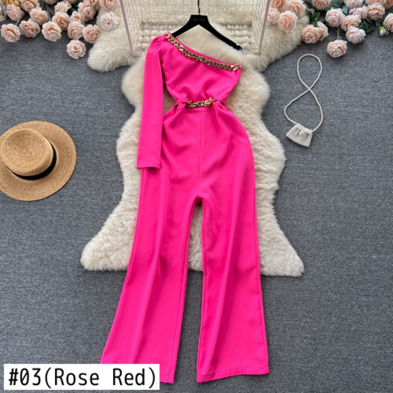 Nomikuma チェーンパッチワークスキューカラーロンパースウエストボディスーツ長袖セクシーストラップレスジャンプスーツ ロング