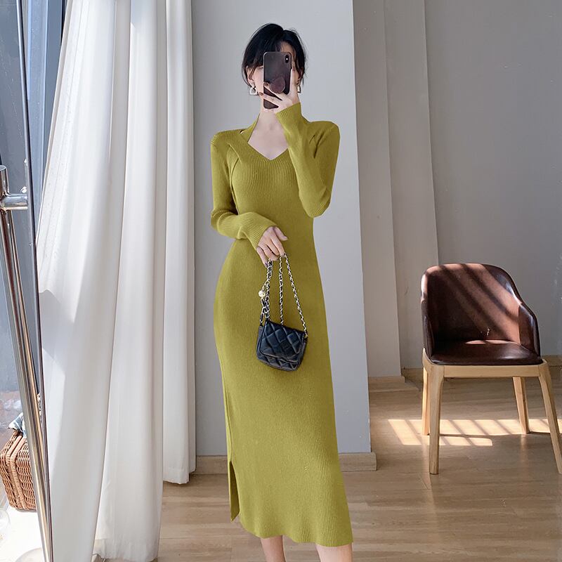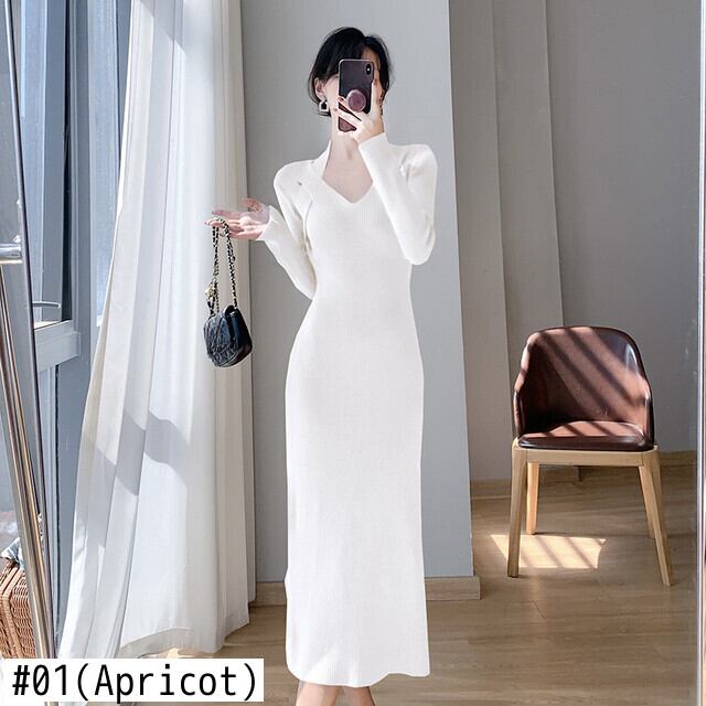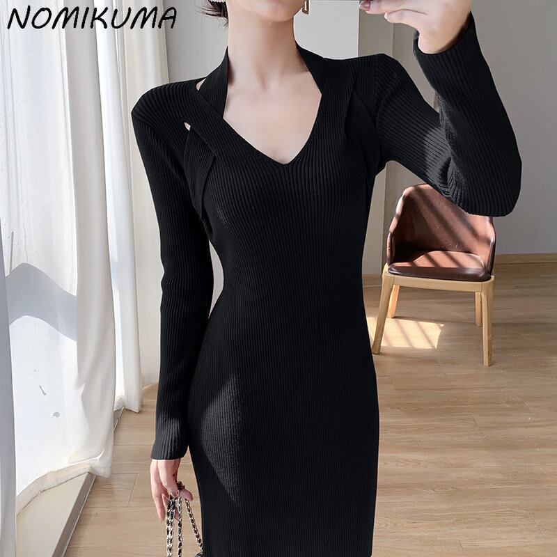 Nomikuma V ネックホルターニットドレススリムボトリングセータースプリットロングドレス秋冬 オータム 秋物 ウィンター 冬物 Vネック