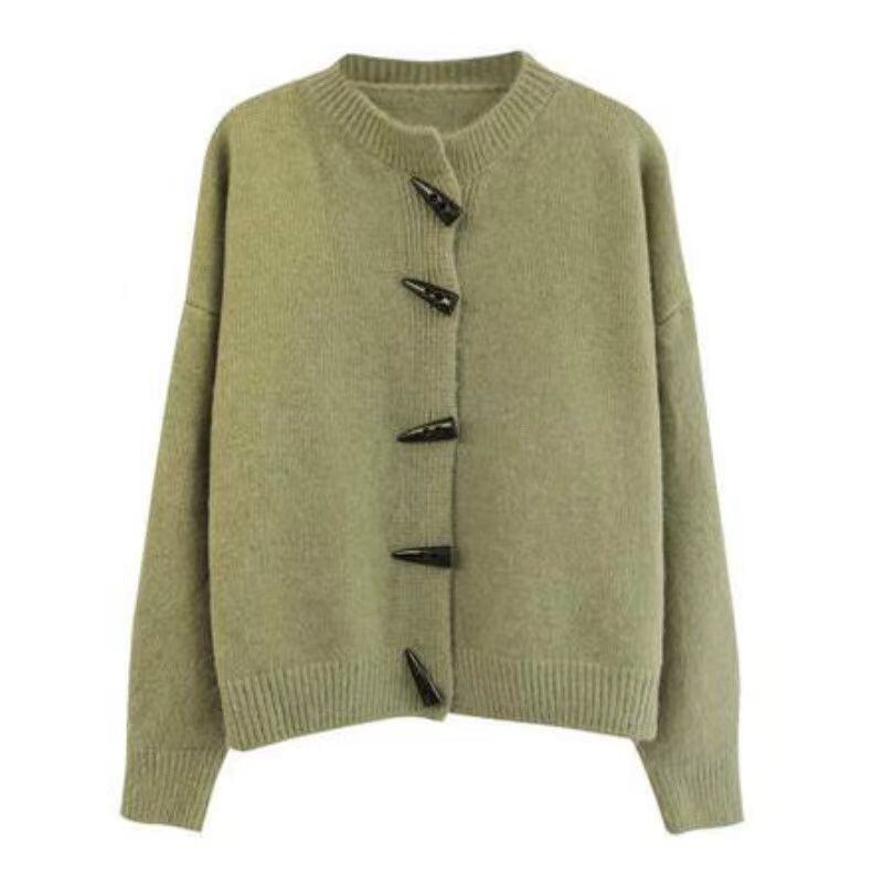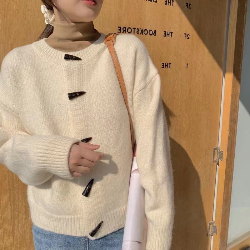 Nomikuma 因果ホーンボタンニットカーディガン秋冬セーター O ネックコート オータム 秋物 ウィンター 冬物 Oネック ソリッドカラー