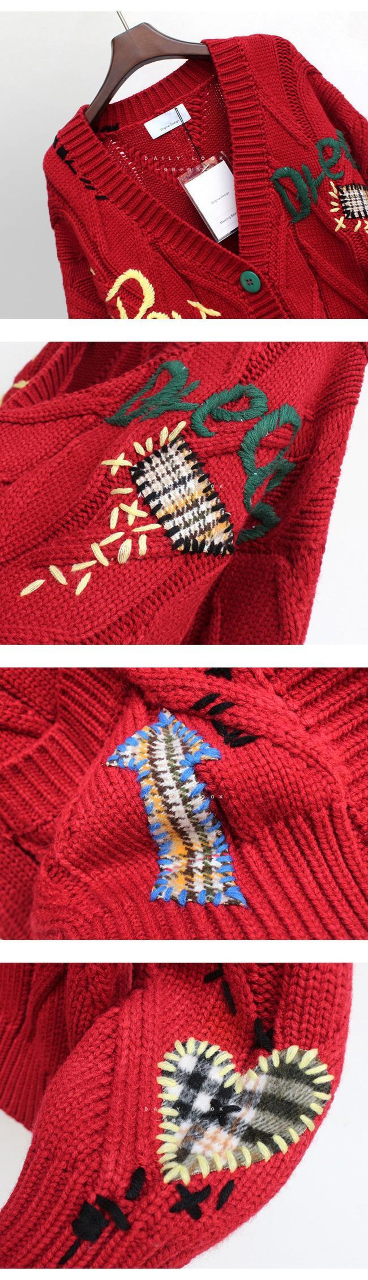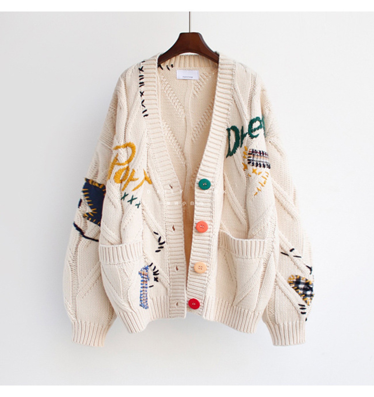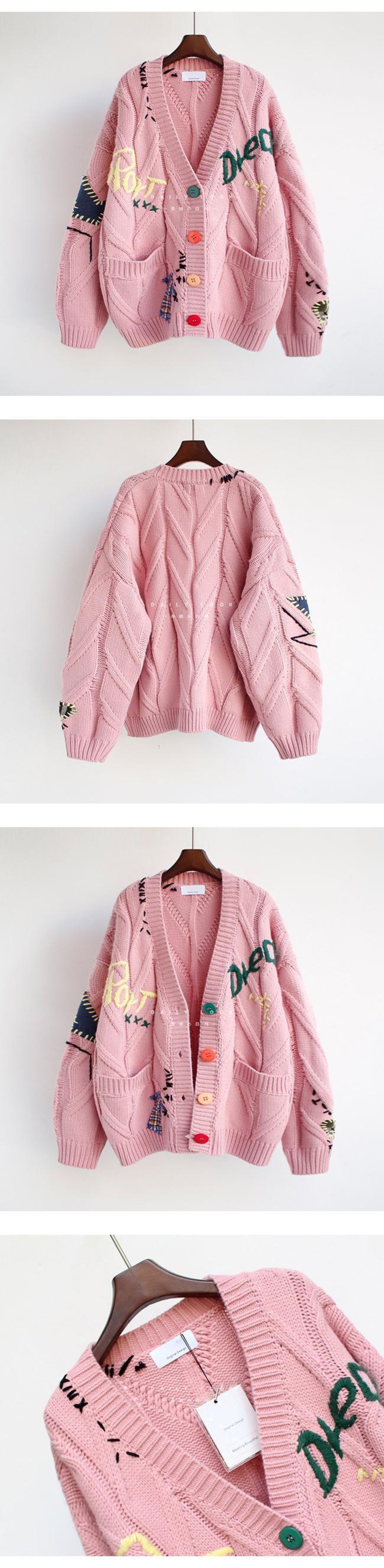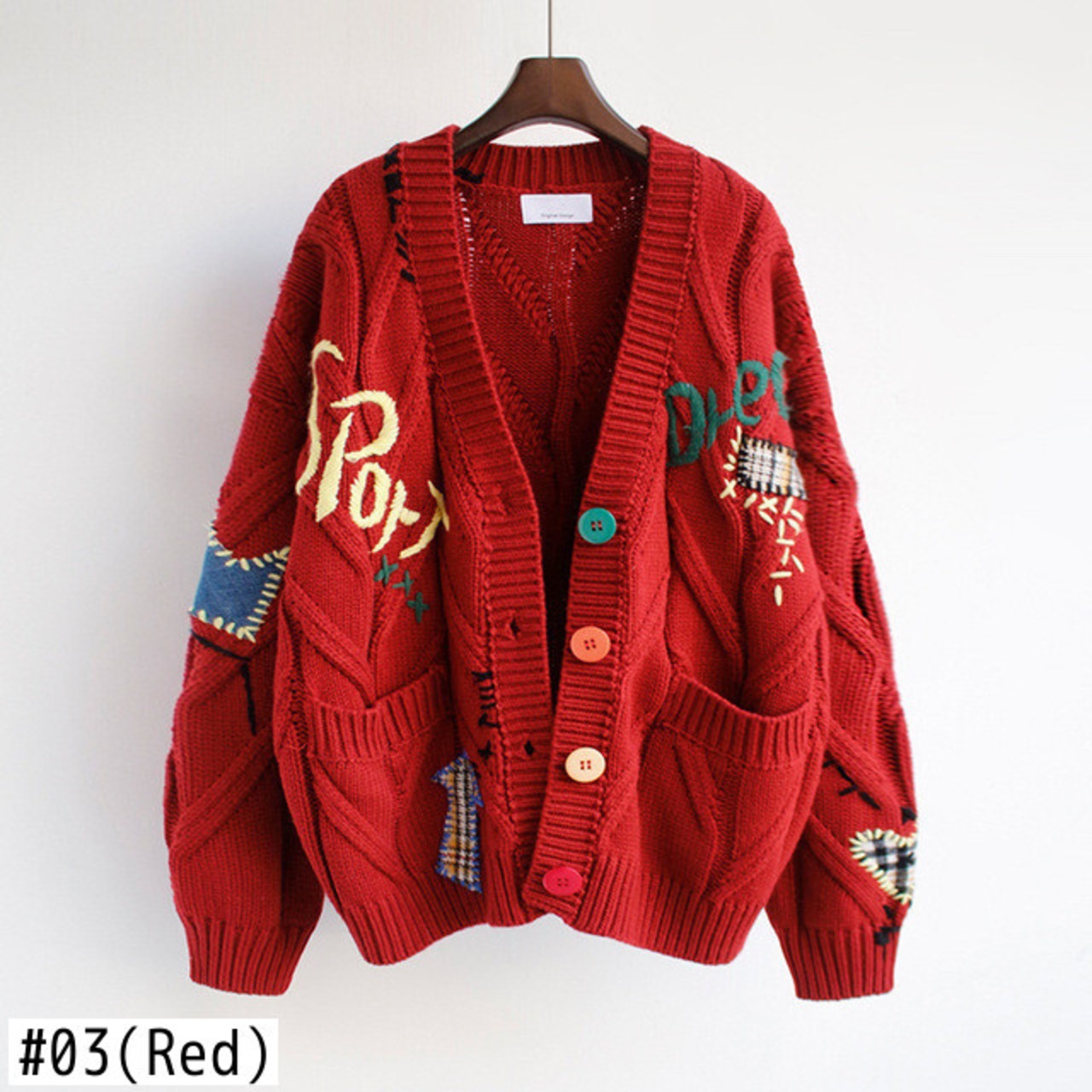 Nomikuma 因果刺繍ニットセーターカーディガントップス秋冬手紙ニットコート オータム 秋物 ウィンター 冬物
