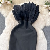 Nomikuma 羽パッチワークストラップレスオフショルダードレススリムセクシーボディコーンドレスパーティー Vestido