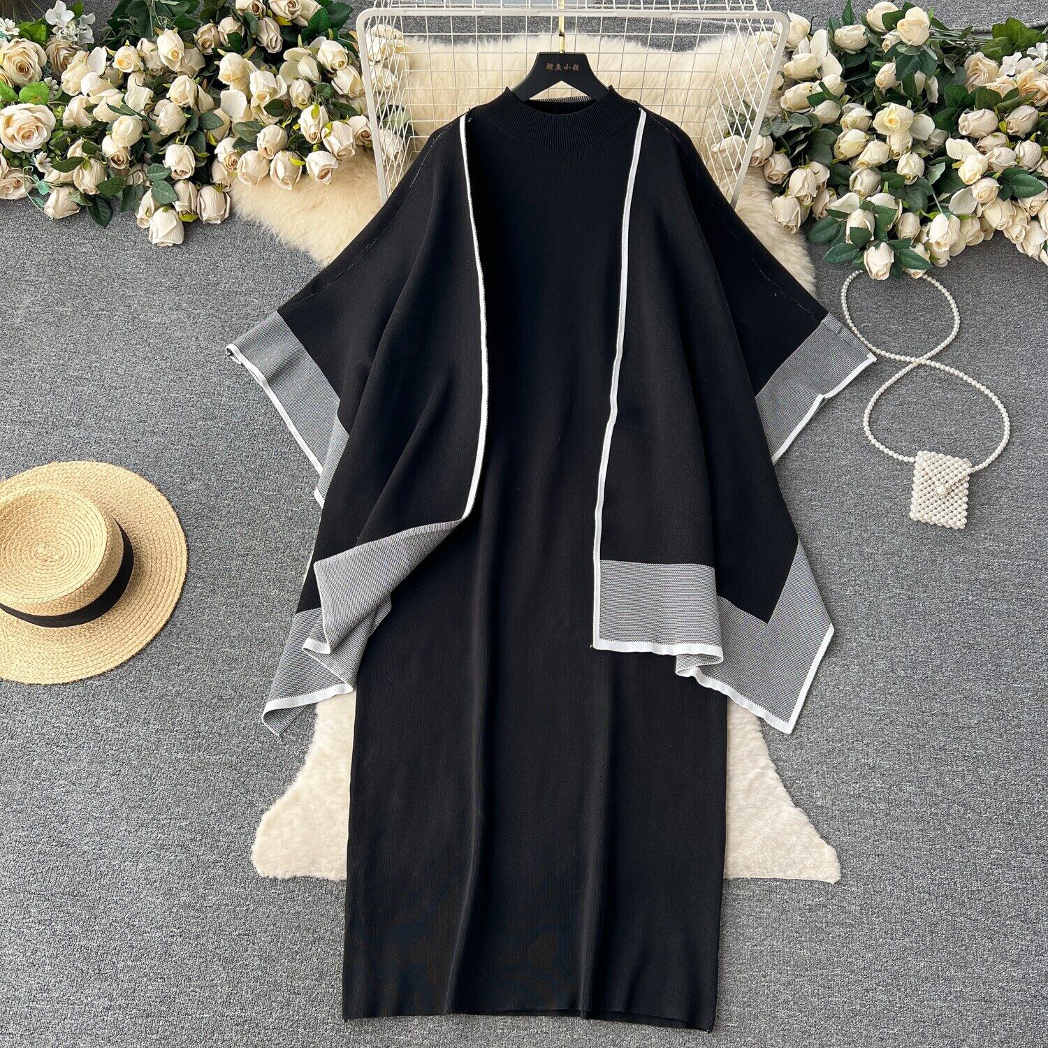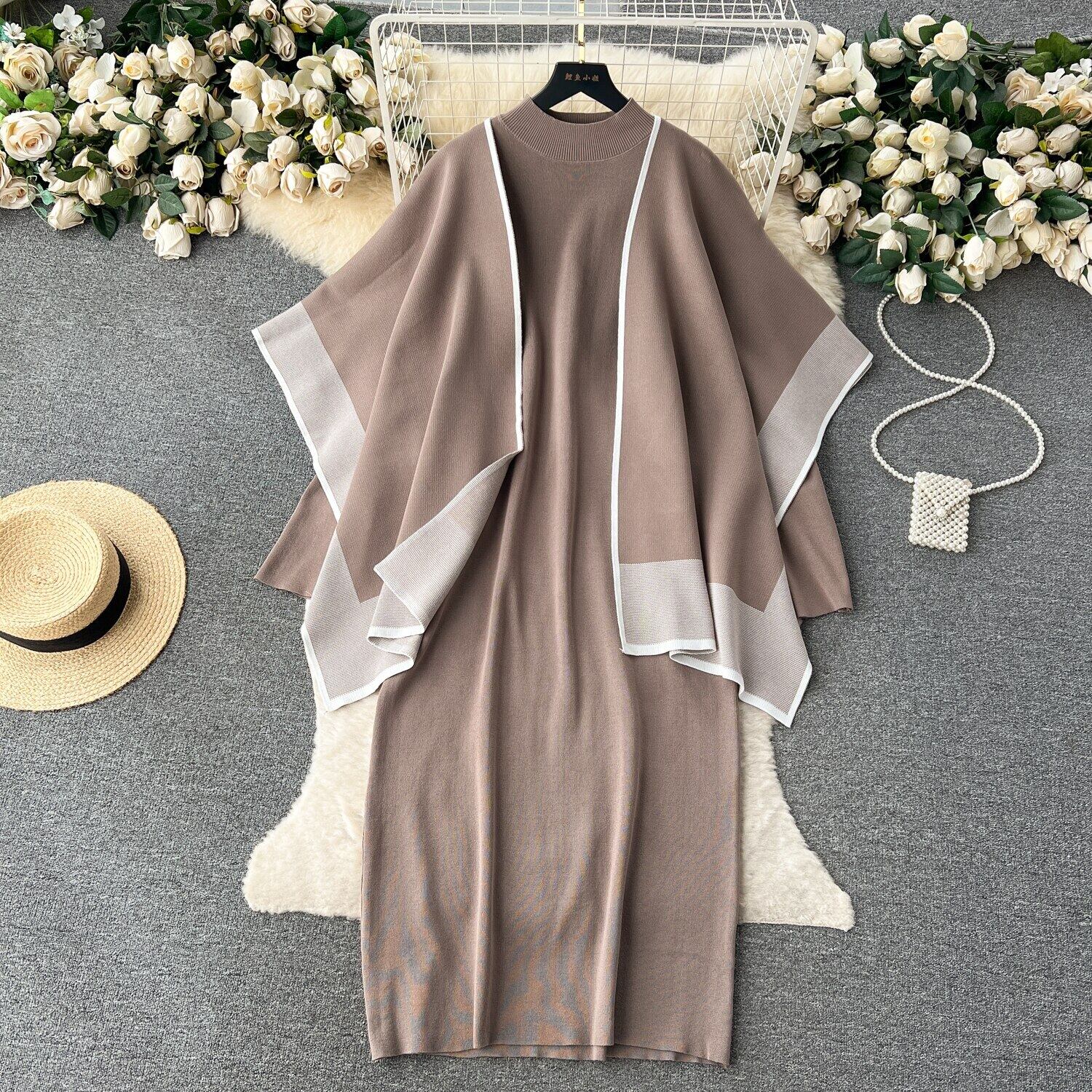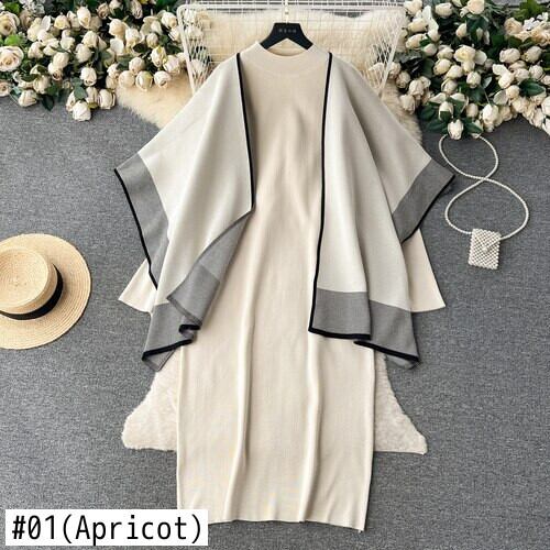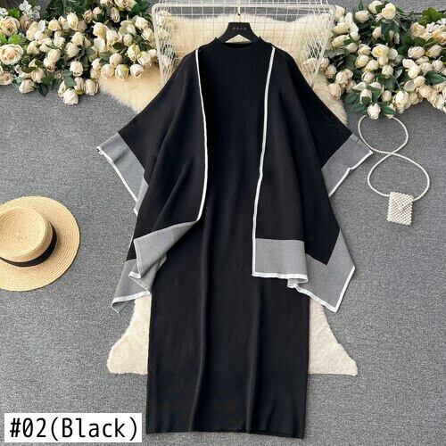 Nomikuma 秋冬 2 ピース衣装因果ヒットカラーカーディガンショールコート + 長袖ボトリングロングセータードレスセット オータム 秋物 ウィンター 冬物