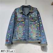 Nomikuma シックビーズダイヤモンド因果長袖デミンコート秋カウボーイトップスターンダウンカラージーンズジャケット ロング オータム 秋物