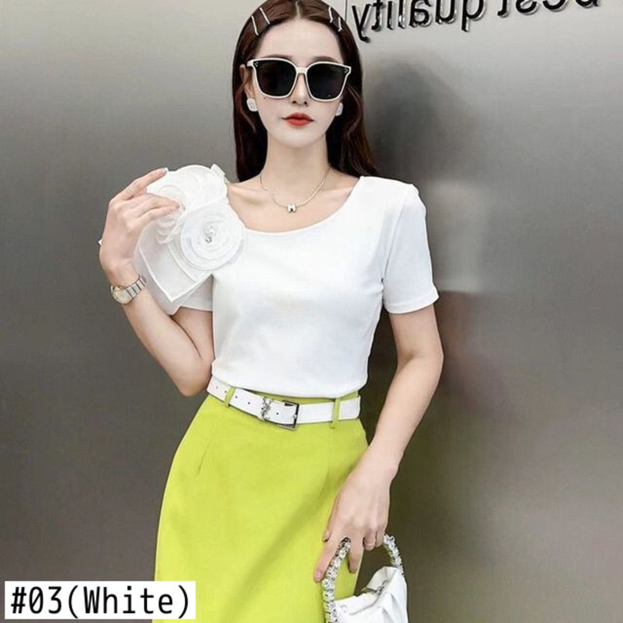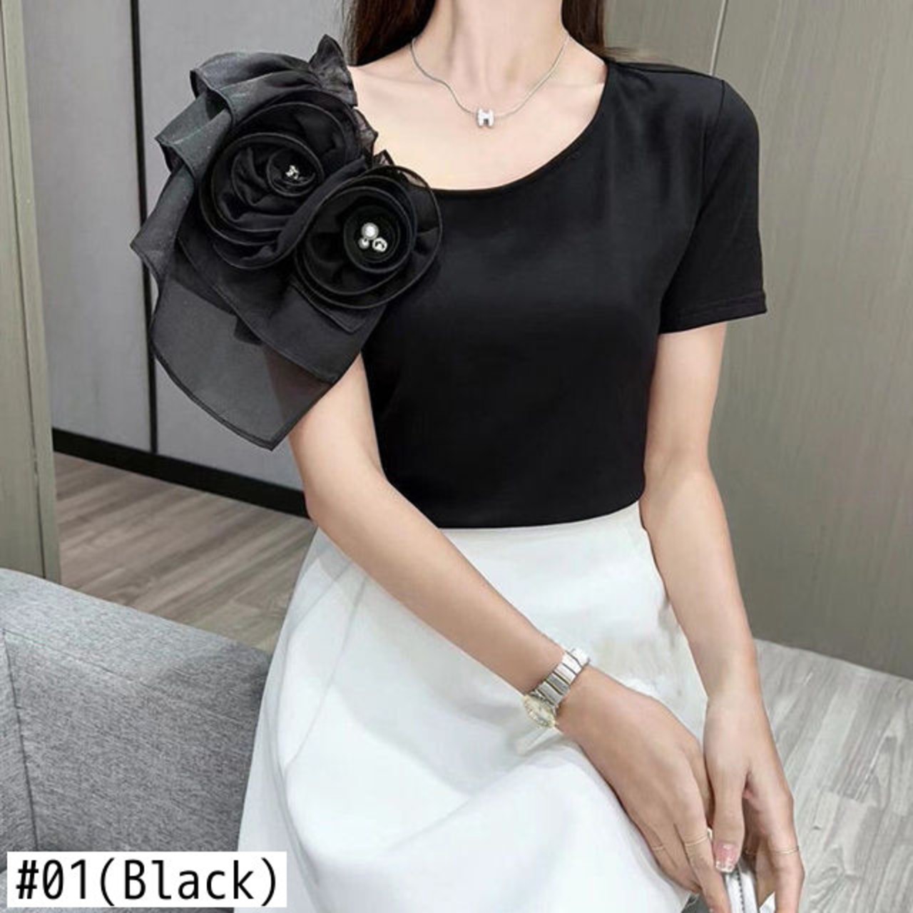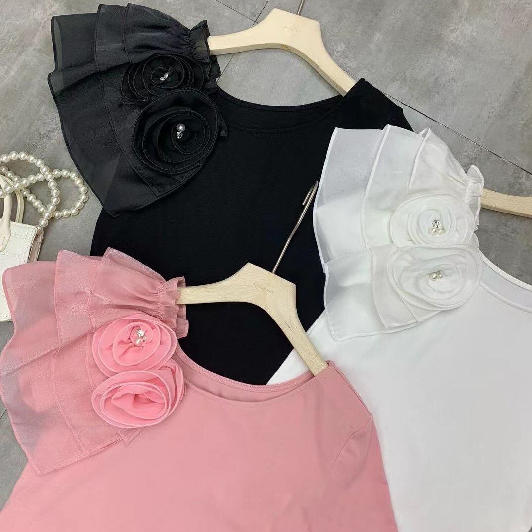 Nomikuma 半袖シャツ夏 3D フラワーグラフィック Tシャツスキューカラースタイル Y2k トップ ショート ハーフスリーブ サマー 夏物 フラワーデザイン