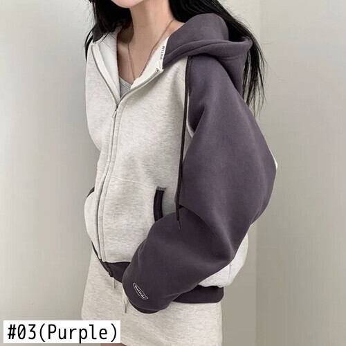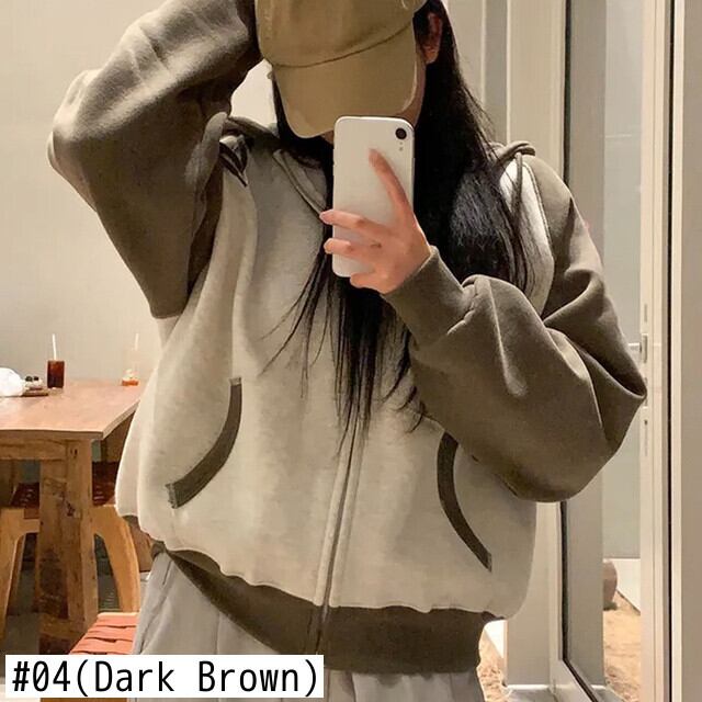 Nomikuma シック秋フード付きヒットカラーパッチワーク因果長袖トレーナーカーディガンジップアップパーカーコート ロング オータム 秋物