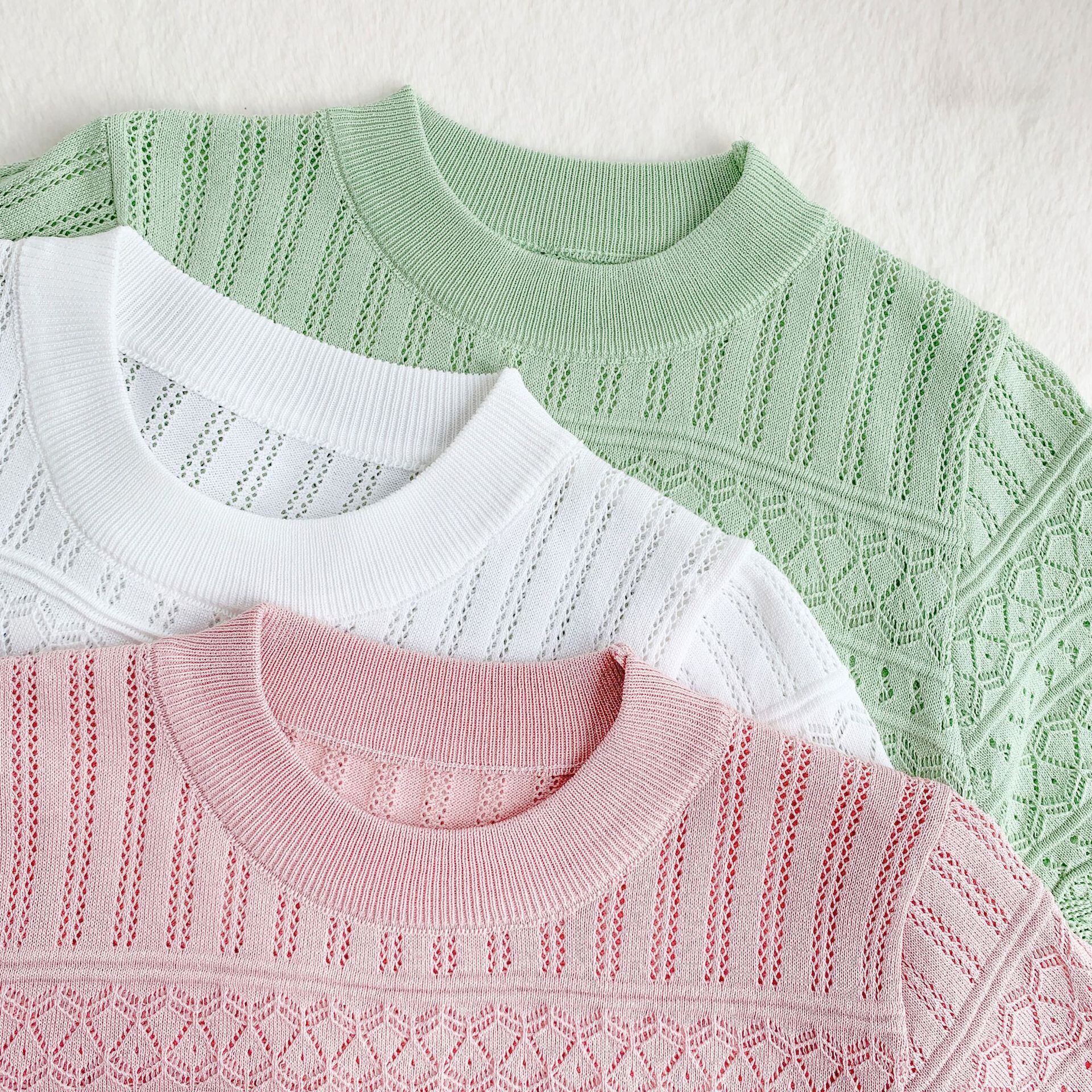 Nomikuma アイスニット半袖 Tシャツ夏中空アウト O ネックシックシャツ Y2k トップ ショート ハーフスリーブ サマー 夏物 Oネック シルク