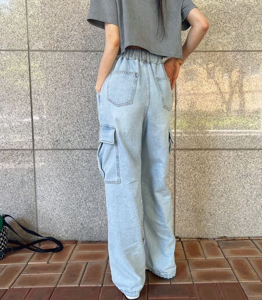 Nomikuma 巾着ウエストデミン長ズボン因果ポケットカーゴパンツ秋ジーンズパンツ ロング オータム 秋物