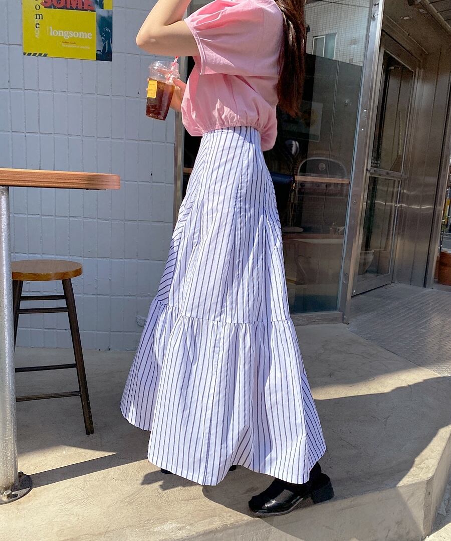 Nomikuma ウエストヒットカラーストライプパッチワーク Aラインロングスカート シックカジュアルスカート ファルダス デ