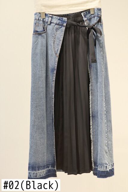 Nomikuma ファルダス デ パッチワーク ヒットカラー デミン スカート 包帯ウエストカジュアル A ライン ロング スカート Aライン