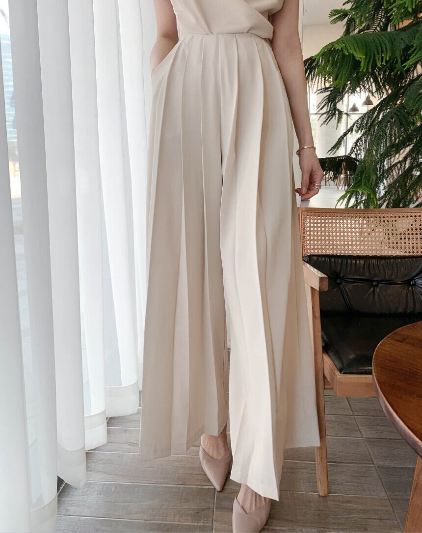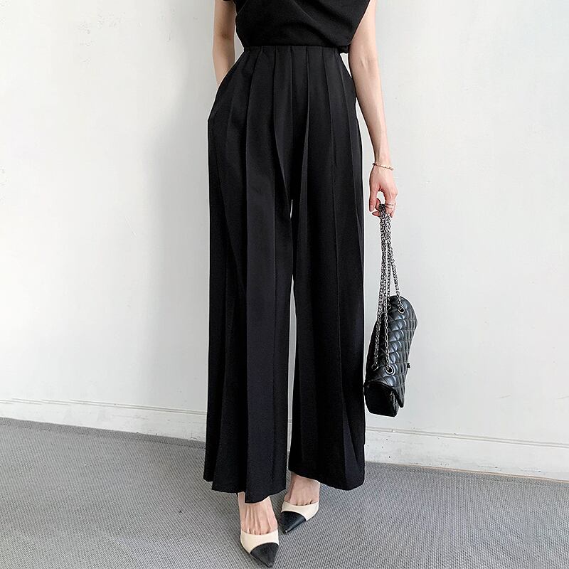 Nomikuma シック秋スタイル多用途ウエストロングプリーツワイドレッグパンツパンツズボン オータム 秋物 ワイドパンツ