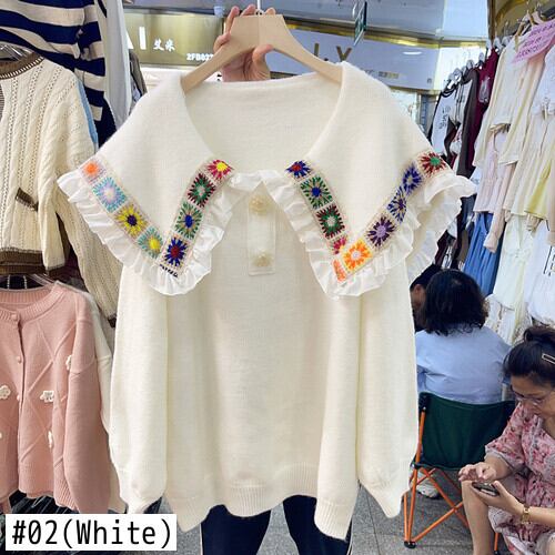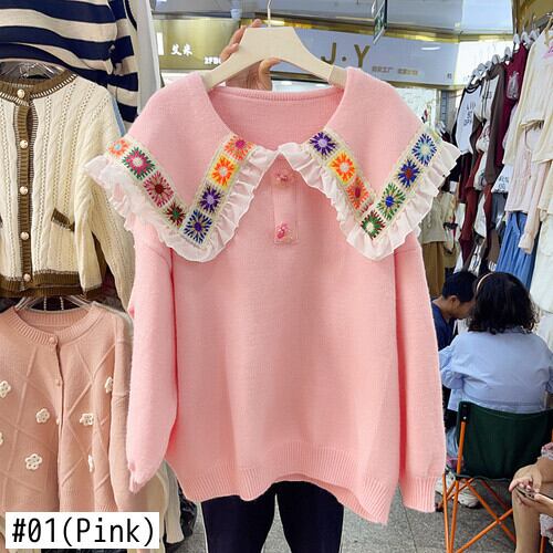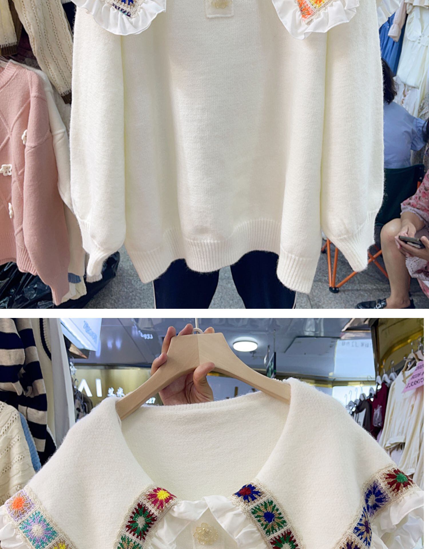 Nomikuma 秋甘い刺繍ピーターパンカラー因果セータープルオーバーニットトップス 大人ガーリー スウィート キュート カジュアル オータム 秋物