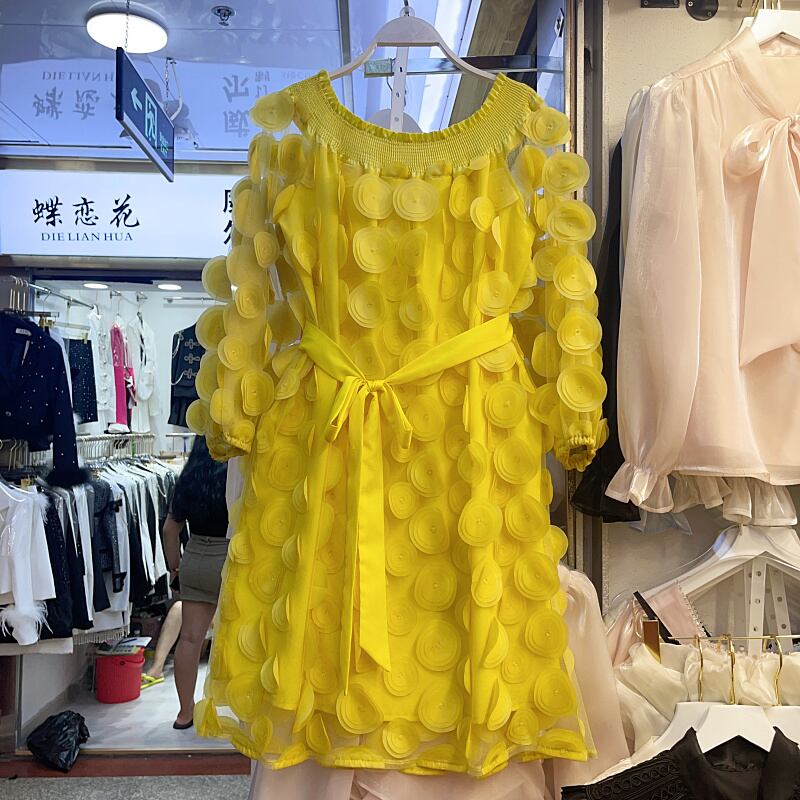 Nomikuma 秋セクシーオフショルダー長袖 3D 花レースパッチワーク中空アウトシフォンドレス ロング オータム 秋物 フラワーデザイン