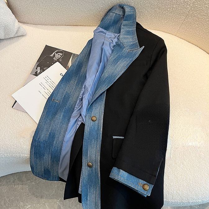 Nomikuma テーラードコート春デミンパッチワークジャケット因果コントラストカラー生き抜くトップス レッド スプリング 春物