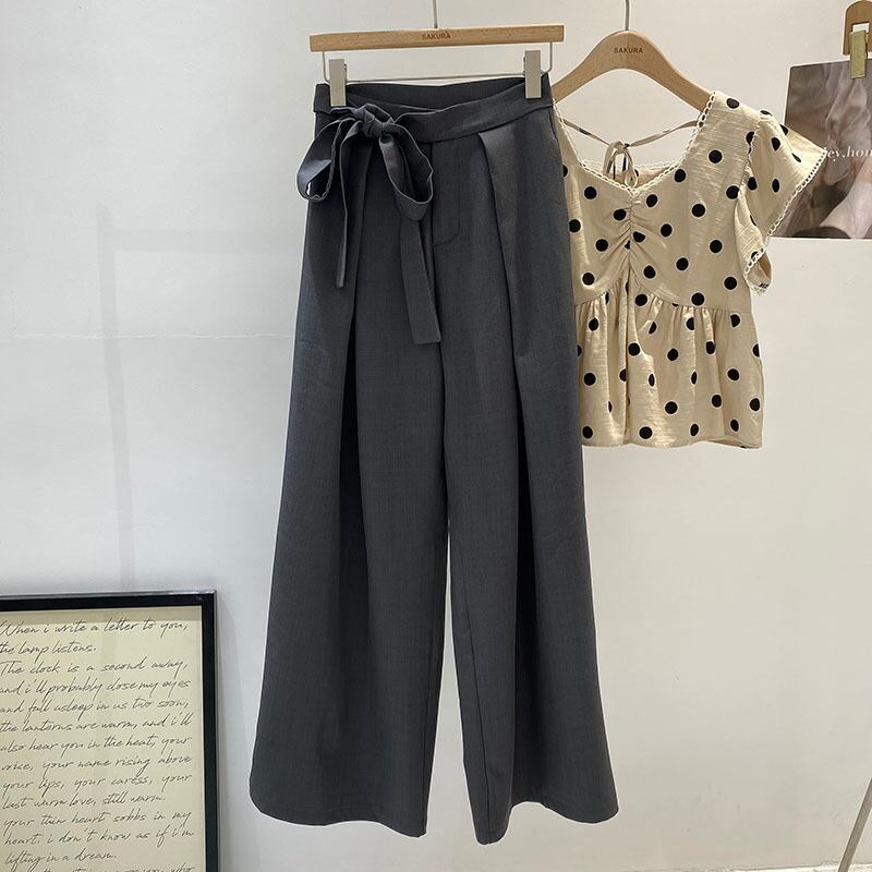 Nomikuma 包帯ウエストスーツワイドレッグパンツ因果秋ズボンスタイルロングパンツ オータム 秋物 ワイドパンツ