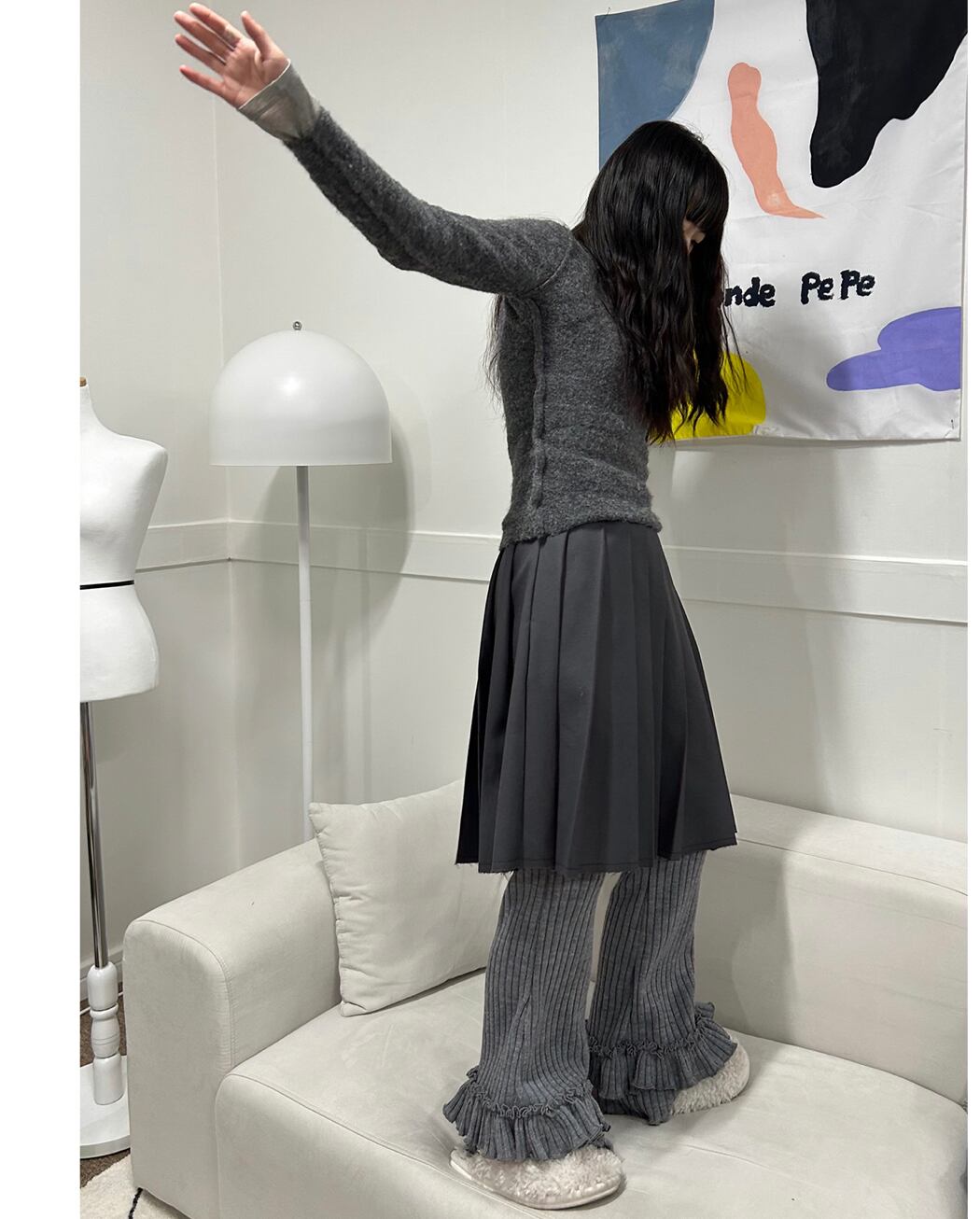 Nomikuma ニットウエストロングパンツ因果フリルフレアパンツ秋冬セーターパンツ Pantalones オータム 秋物 ウィンター 冬物