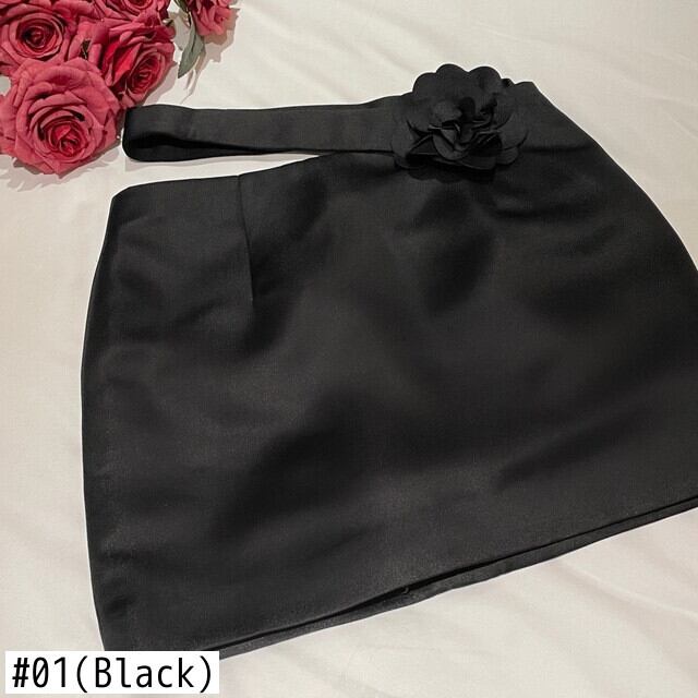 Nomikuma サテン黒ミニスカート花中空ウエスト A ラインスカートガールセクシーヒップラップスカート ブラック Aライン フラワーデザイン
