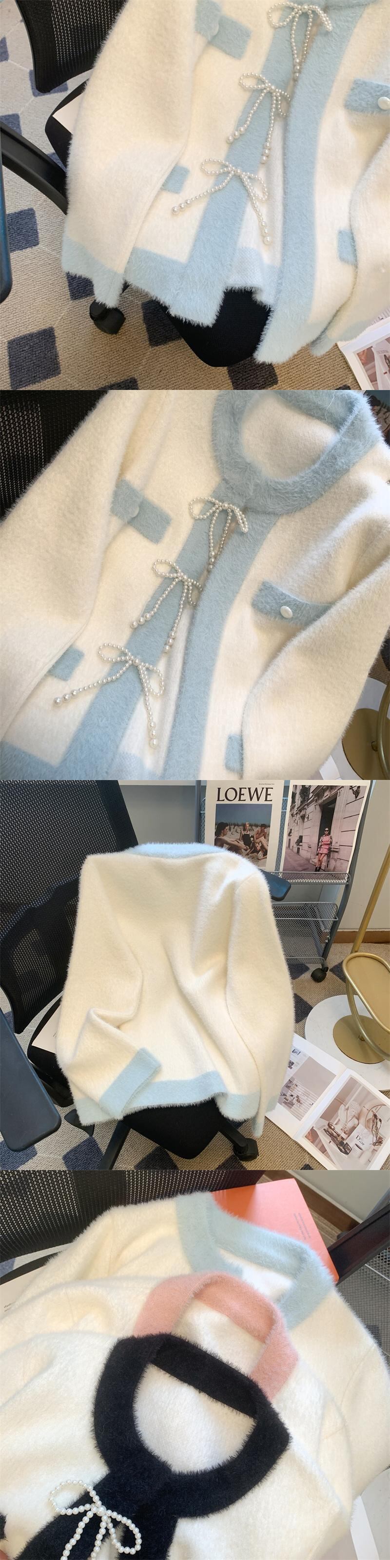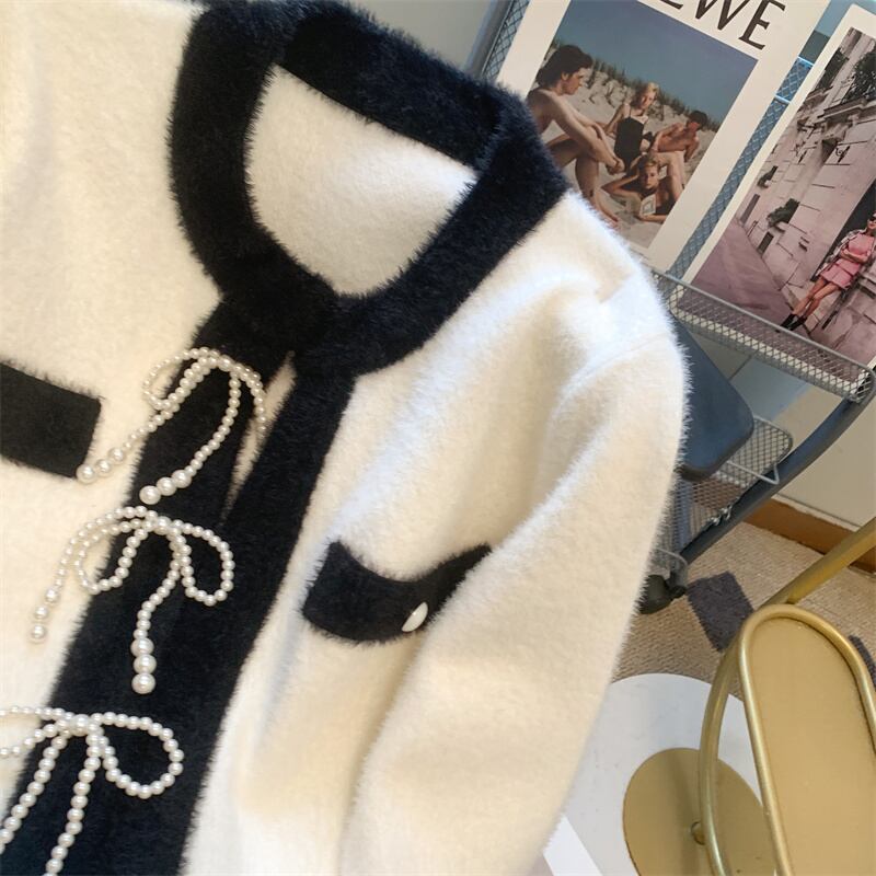 Nomikuma フェイクミンクカシミヤヒットカラーニットカーディガンセーターコート因果秋冬ニットジャケット オータム 秋物 ウィンター 冬物 ファー