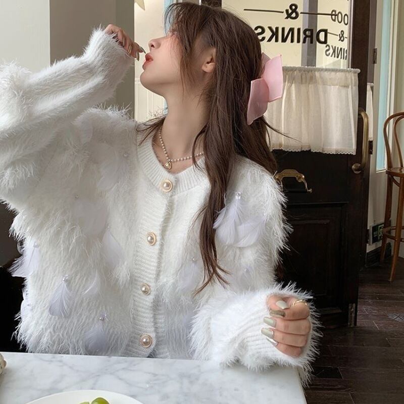 Nomikuma 秋冬セーターコートシックテル羽パッチワークニットトップスニットカーディガン オータム 秋物 ウィンター 冬物