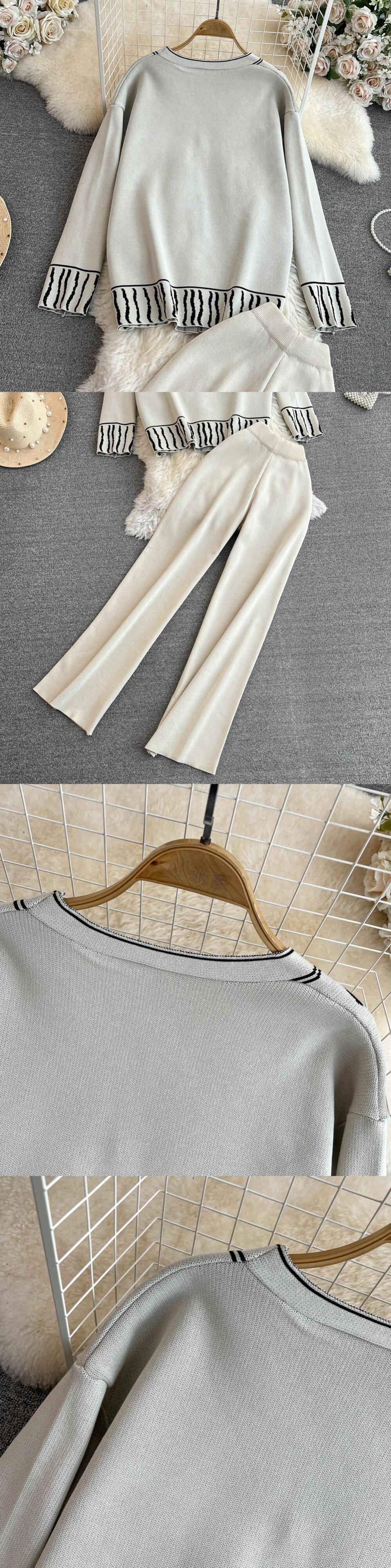 Nomikuma セットコントラスト V ネックシングルブレストニットコートツーピースウエストワイドレッグパンツ衣装 Vネック ワイドパンツ