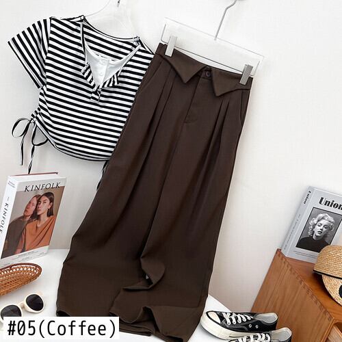 Nomikuma 不規則折りウエストスーツパンツ因果秋ズボンワイドレッグパンツ オータム 秋物 ワイドパンツ