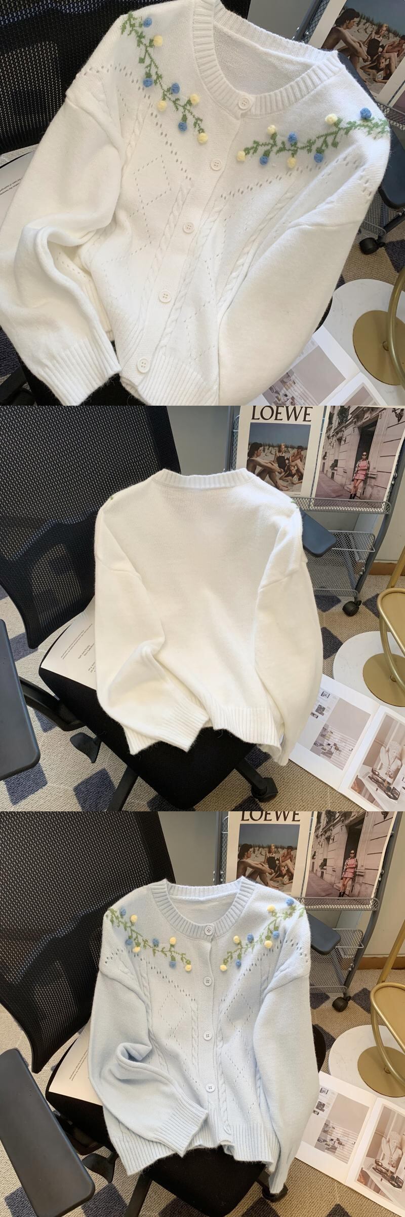 Nomikuma 甘い因果花刺繍中空アウトニットカーディガンセータートップ秋セーターコート 大人ガーリー スウィート キュート カジュアル オータム 秋物 花柄