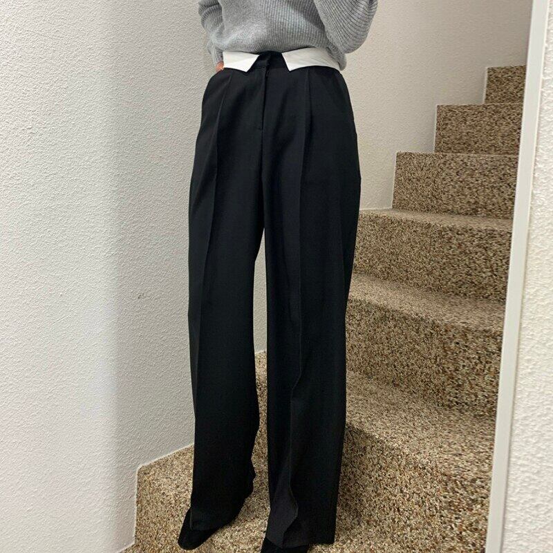 Nomikuma カラーフォールドウエストスーツロングパンツシック秋ズボン因果ストレートパンツ オータム 秋物