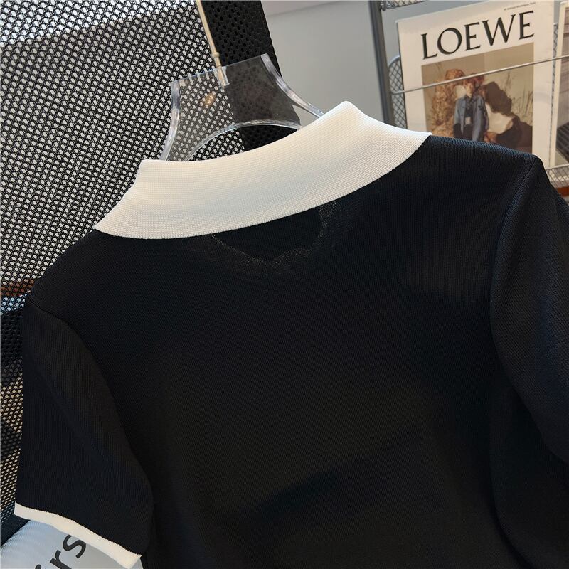 Nomikuma 夏ヒットカラーターンダウンカラーコントラストダイヤモンドルーズ半袖ニットカーディガンセータートップ ショート ハーフスリーブ サマー 夏物