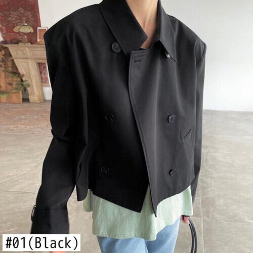 Nomikuma シック秋レトロターンダウン襟ダブルブレスト長袖ショートトレンチコートジャケット ロング オータム 秋物