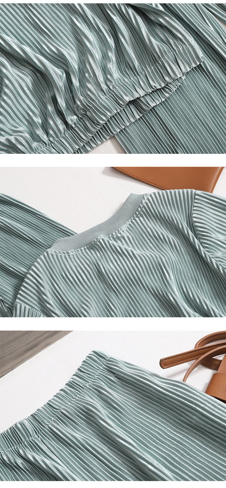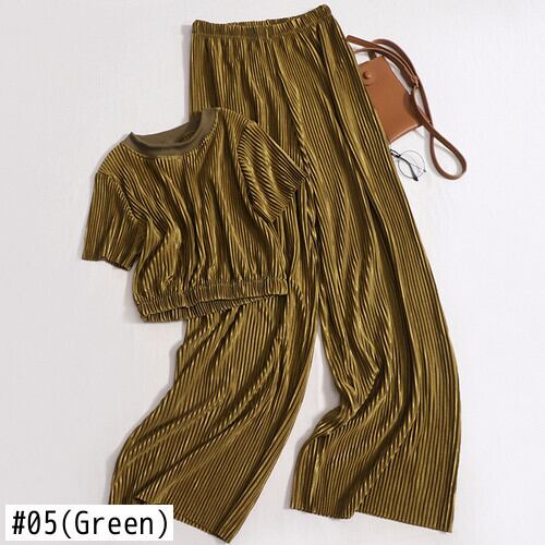 Nomikuma ツーピース衣装夏 O ネックショートトップシャツ + ウエストワイドレッグロングパンツセット サマー 夏物 Oネック ワイドパンツ