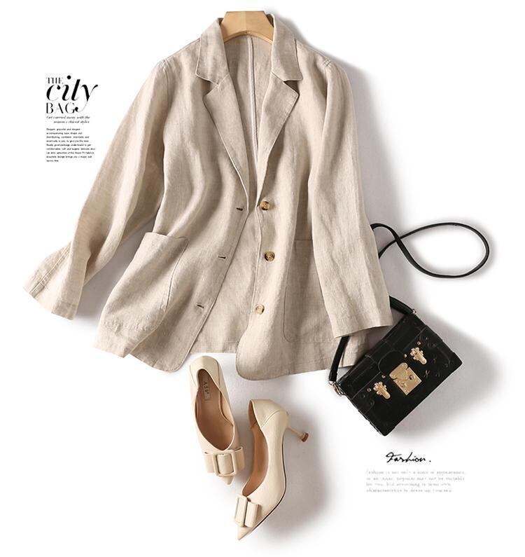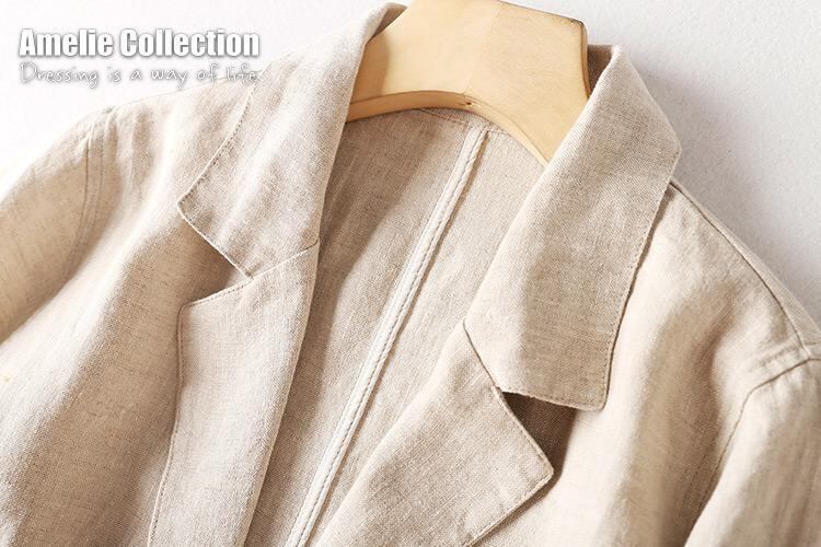 Nomikuma 春秋コットンリネンテーラードコート長袖ターンダウン襟スーツジャケット因果ブレザー ロング レッド スプリング 春物 オータム 秋物