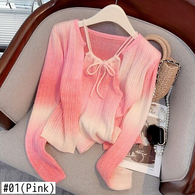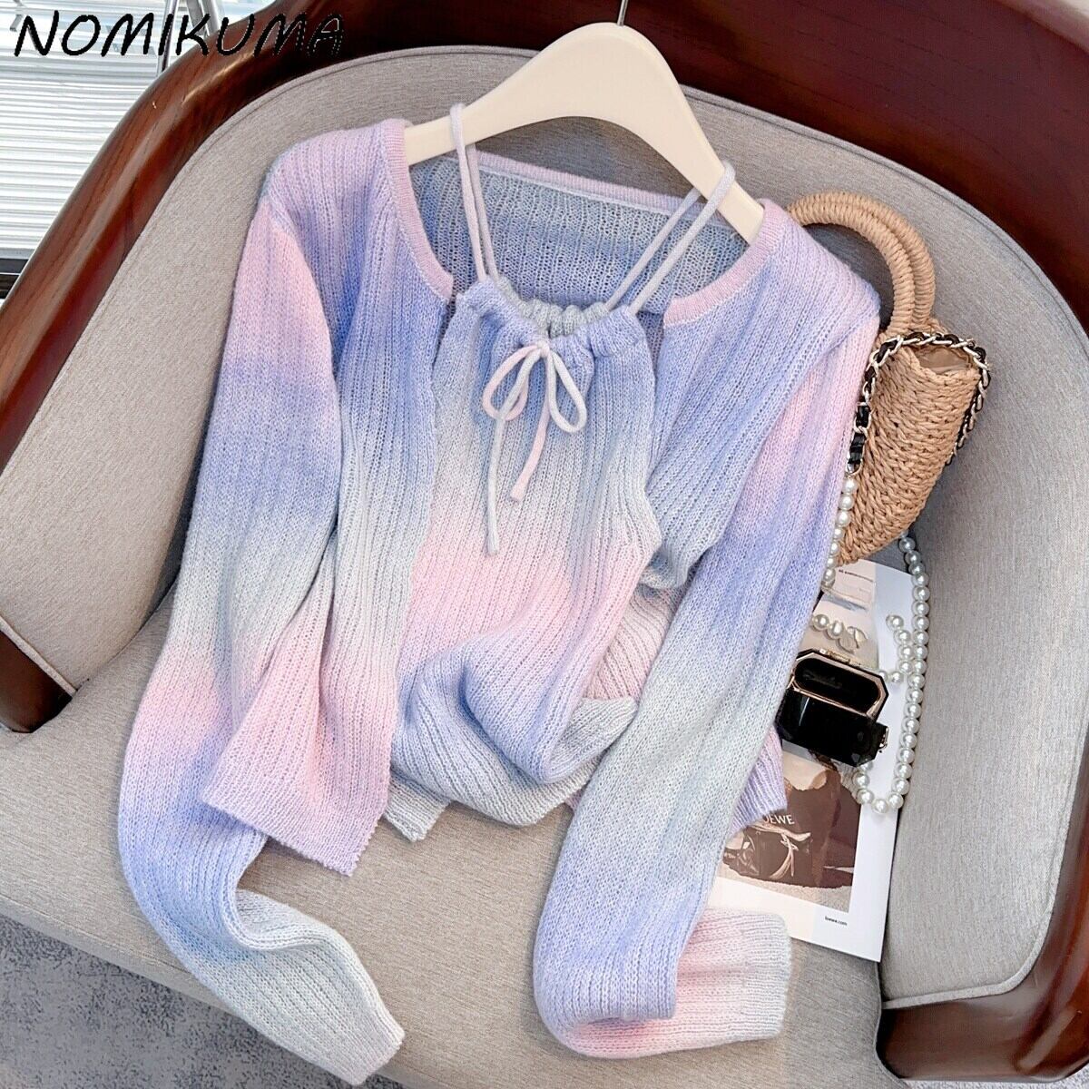 Nomikuma 秋スイートニット レディース ホルター キャミソール セーター 2 点セット タイダイ ニット トップス 大人ガーリー スウィート キュート カジュアル オータム 秋物