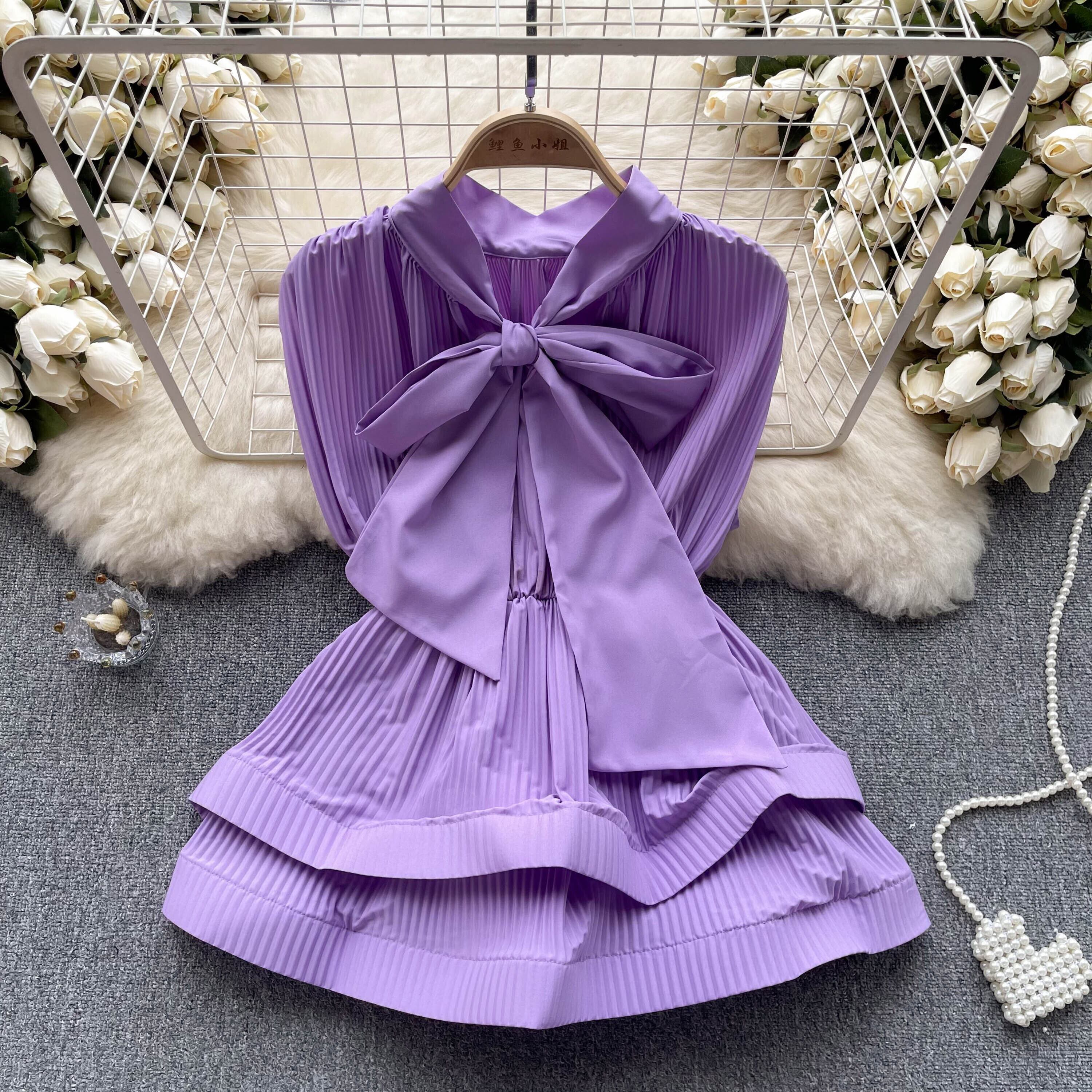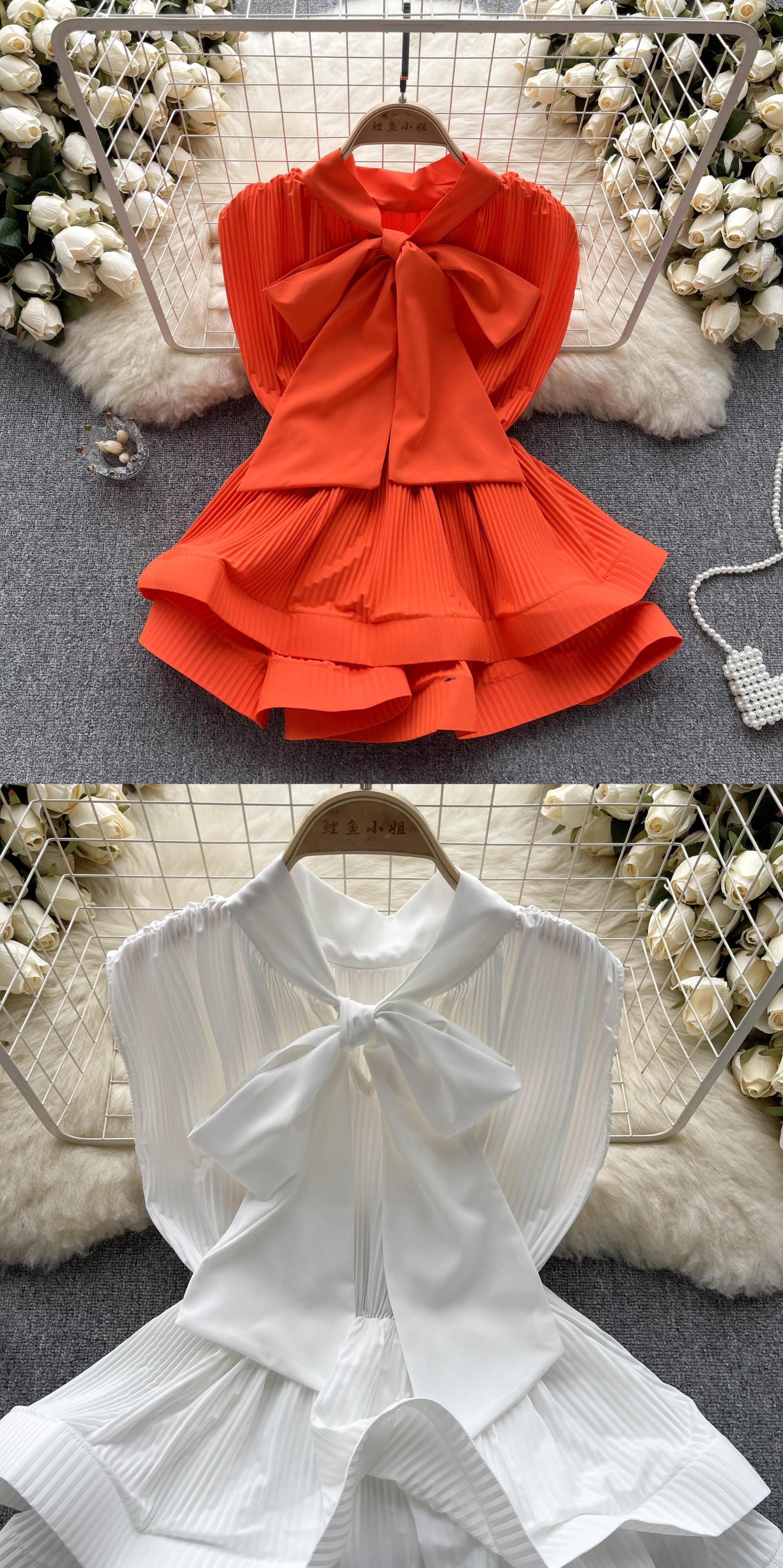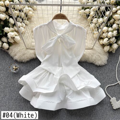 Nomikuma ノースリーブプリーツブラウスサマーシャツスリムウエストシックちょう結びトップス リボン 夏物