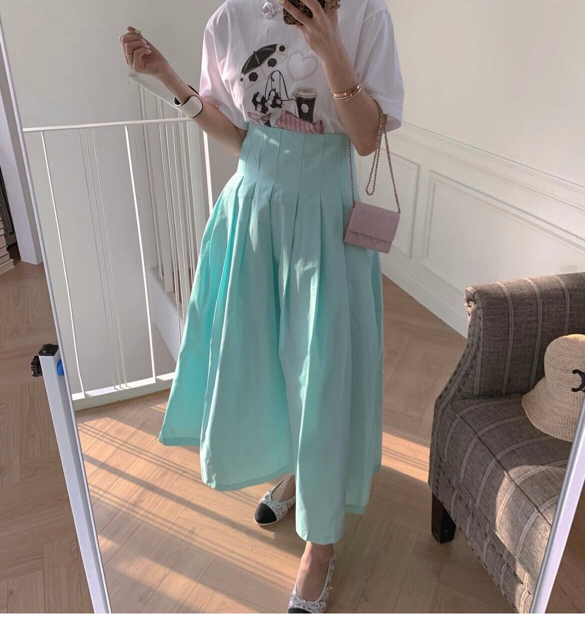 Nomikuma ひだウエストカジュアル A ラインスカートレディース夏ボトムスソリッドスカート Faldas デ サマー 夏物 Aライン ソリッドカラー
