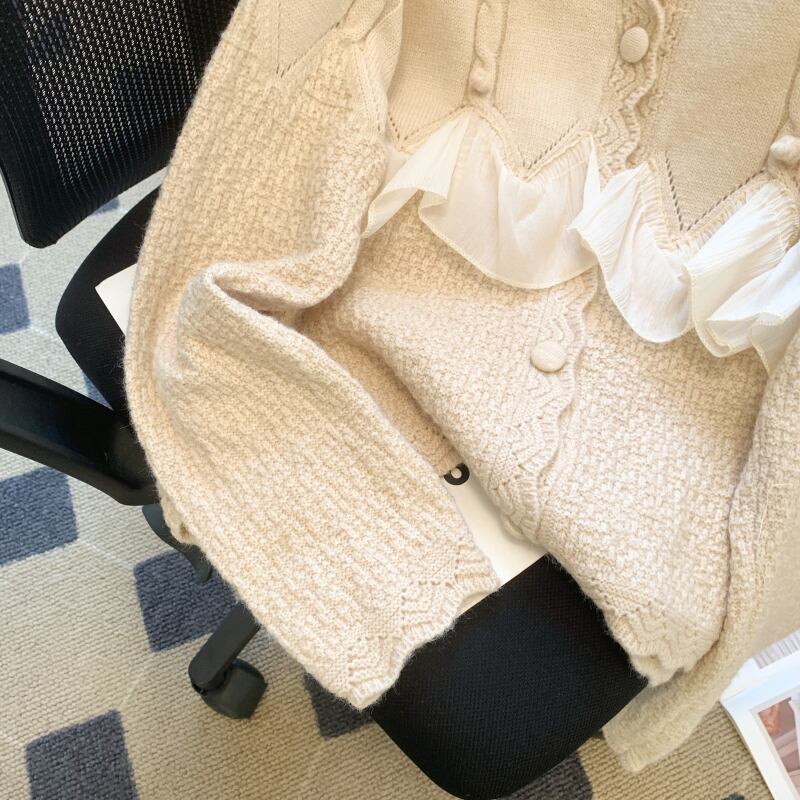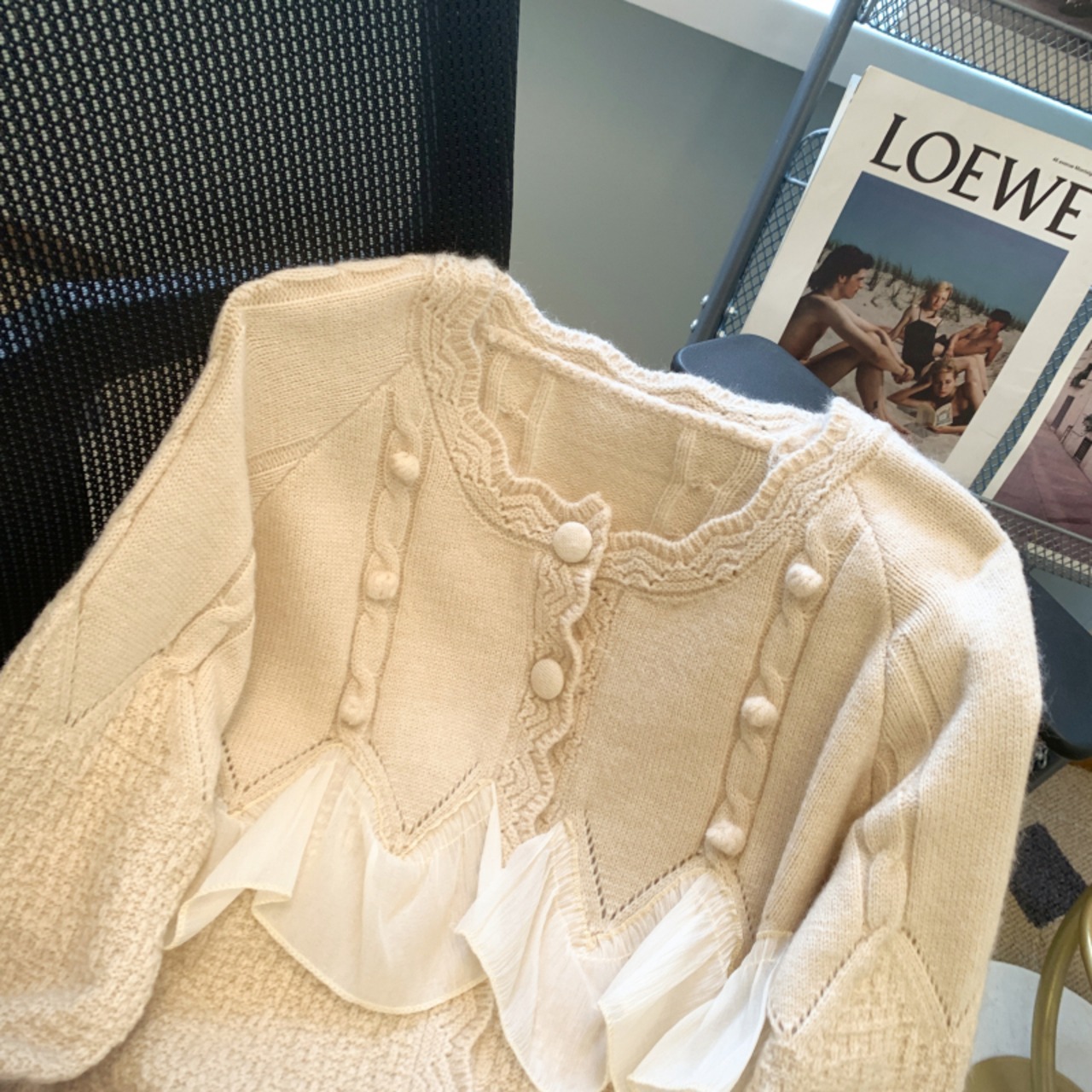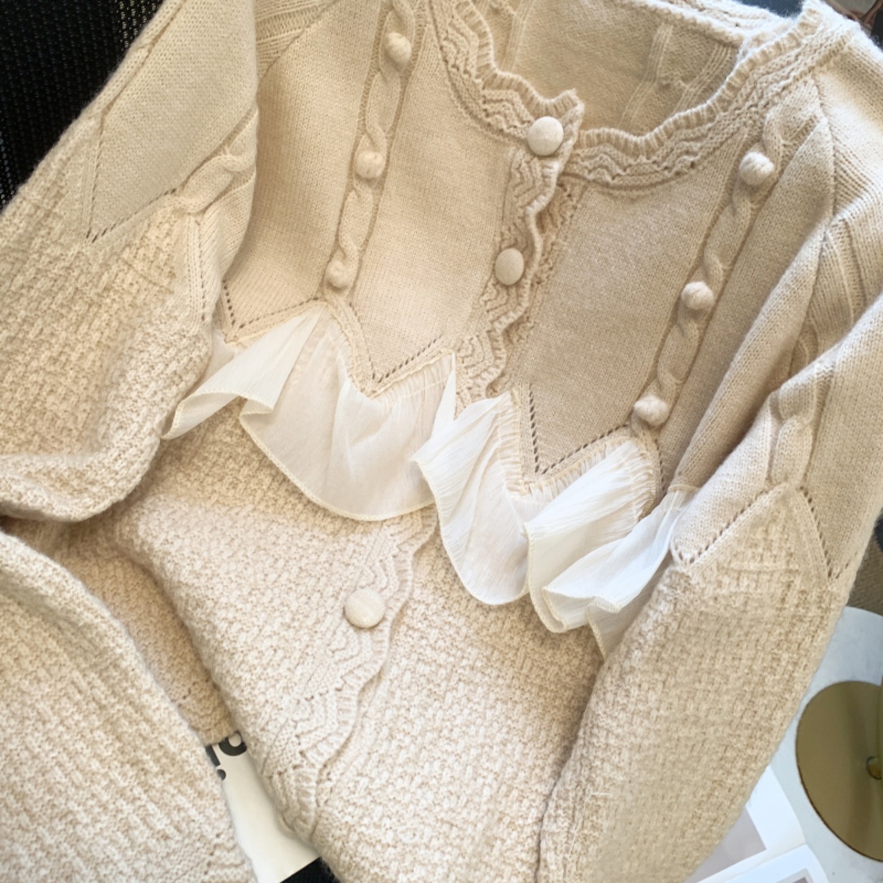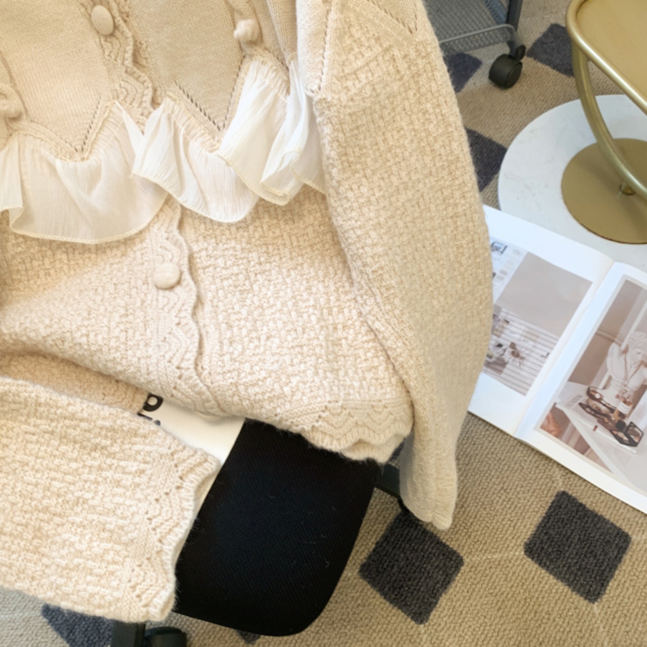 Nomikuma 因果フリル甘いパッチワークセーターニットカーディガン秋シックニットウェアコートトップス 大人ガーリー スウィート キュート カジュアル オータム 秋物