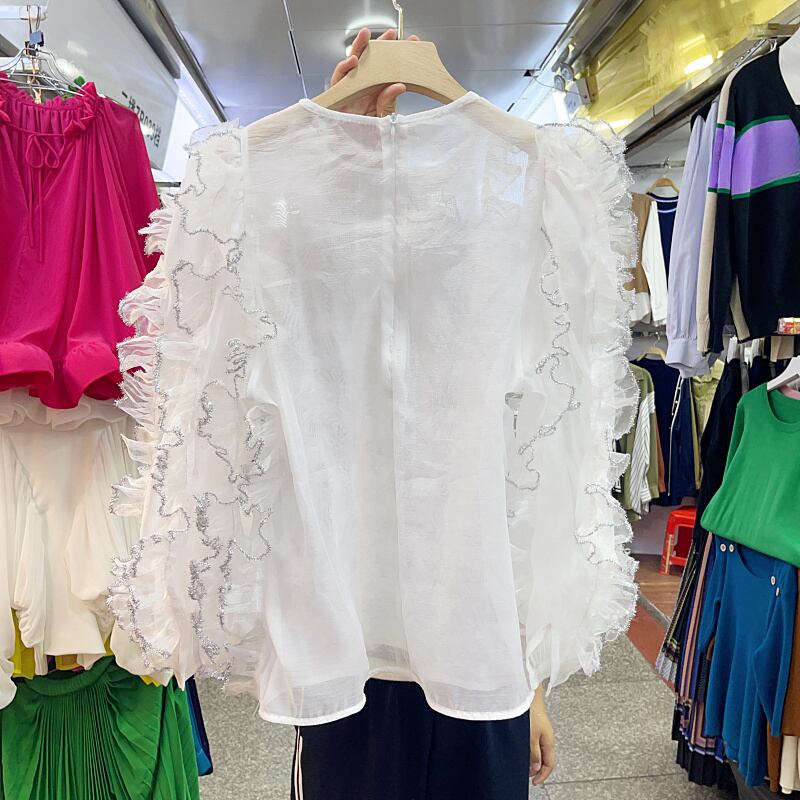 Nomikuma ヒットカラーフリルパッチワークシースルーブラウスシック秋トップスデ オータム 秋物