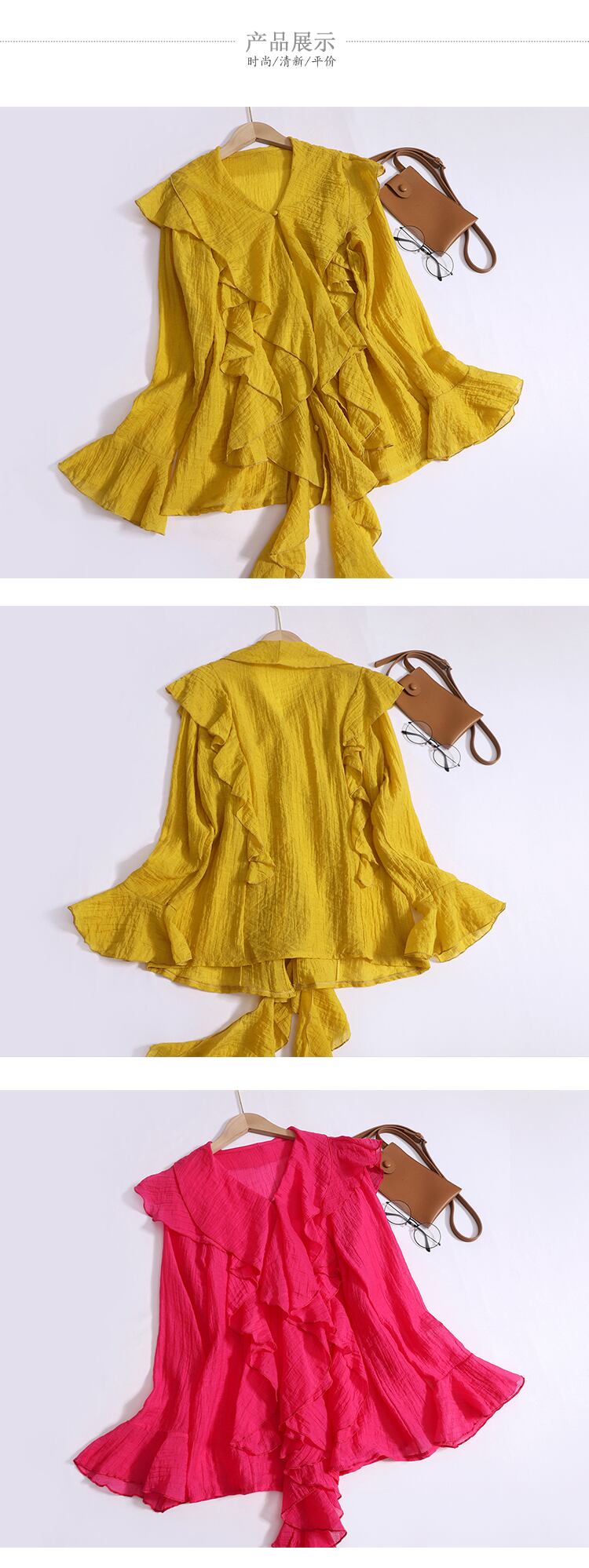 Nomikuma フリル V ネックシャツ秋フレア袖ソリッドスタイリッシュブラウストップデモーダ レッド オータム 秋物 Vネック ソリッドカラー