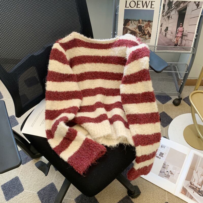 Nomikuma ストライプ セーター レディース 秋/冬 ショート ニット カーディガン カジュアル ニットウェア アウター ジャケット オータム 秋物 ウィンター 冬物