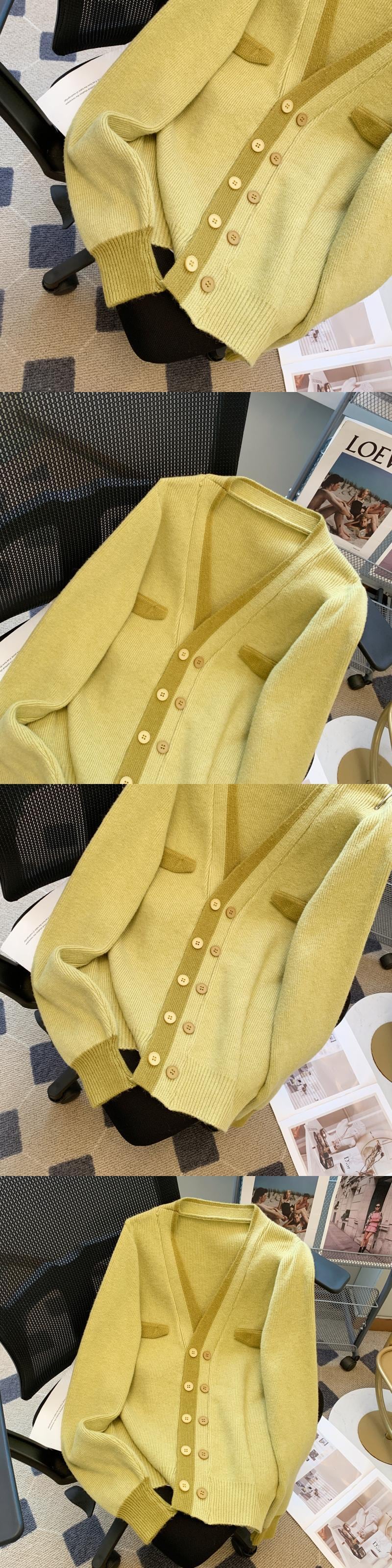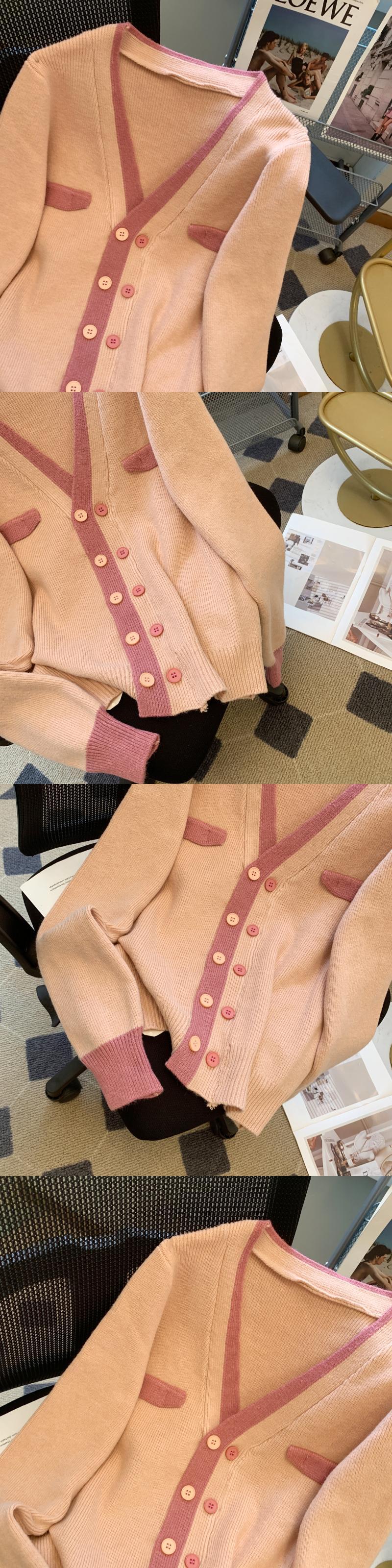 Nomikuma 秋冬 V ネック カジュアル ダブルブレスト ニット カーディガン コントラスト カラー セーター コート オータム 秋物 ウィンター 冬物 Vネック